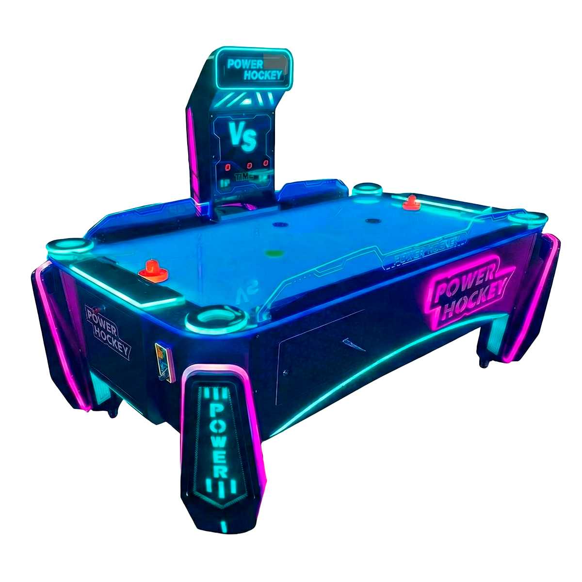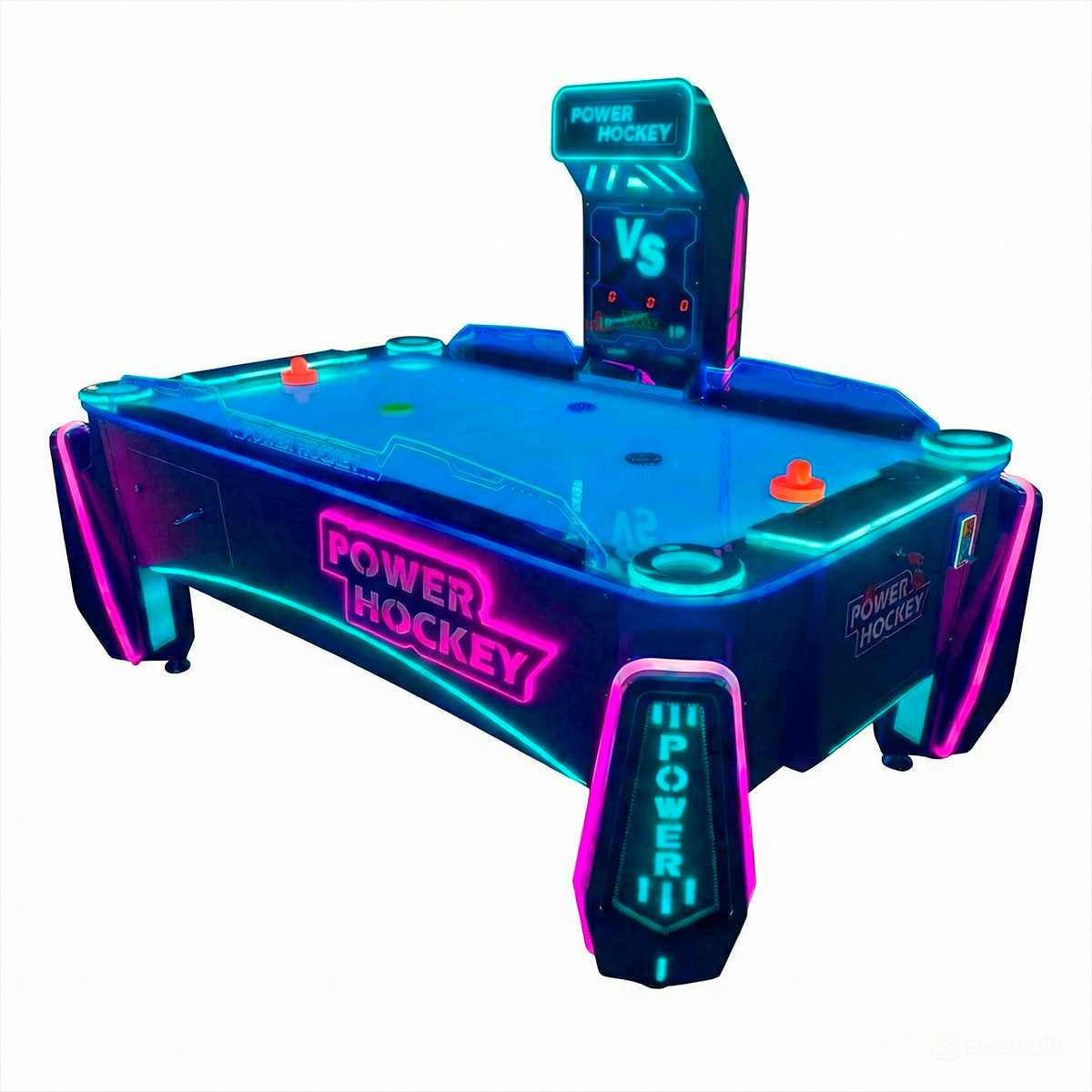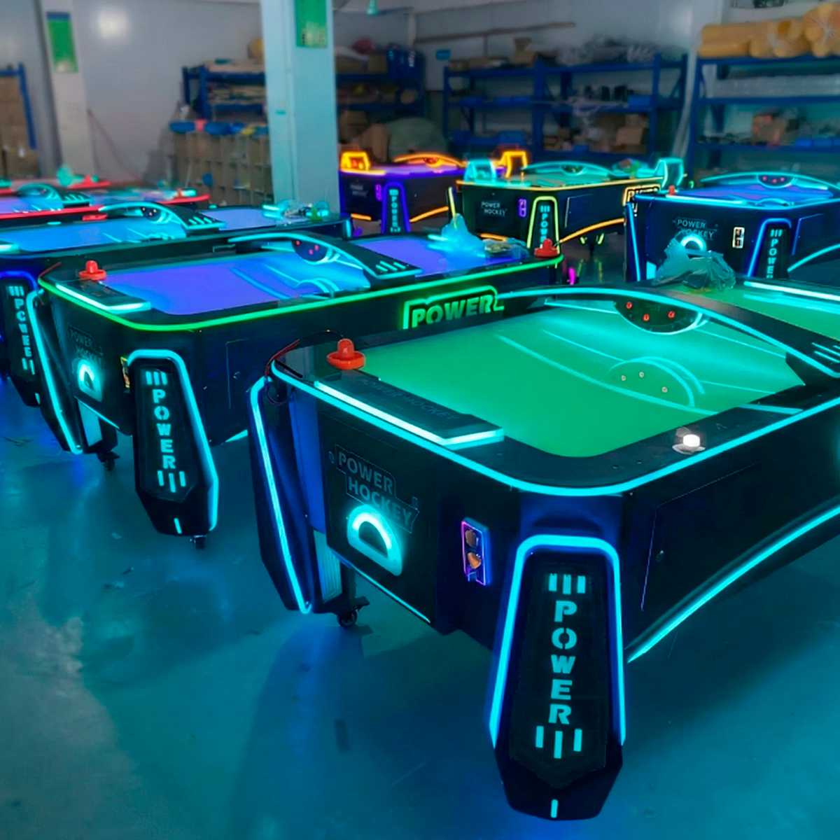 Яркая неоновая LED-подсветка, глянцевая поверхность игрового поля и массивные ножки с надписями «POWER» — всё это не только выделяет стол среди других, но и вызывает желание подойти и сыграть. Гладкое игровое поле с системой подачи воздуха обеспечивает легкое и быстрое скольжение шайбы. За счет этого каждая партия проходит в высоком темпе, развивая реакцию и азарт игроков. Комфортная высота и продуманная эргономика позволяют играть длительное время без усталости. Бортики надежно удерживают шайбу внутри поля, а ворота четко фиксируют результат каждого удара.