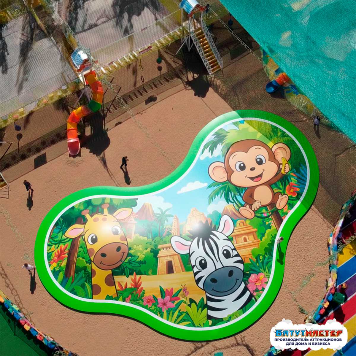 Надувная подушка на платформе «Сафари-друзья» — это современный и яркий аттракцион, ориентированный на активный отдых детей и подростков.