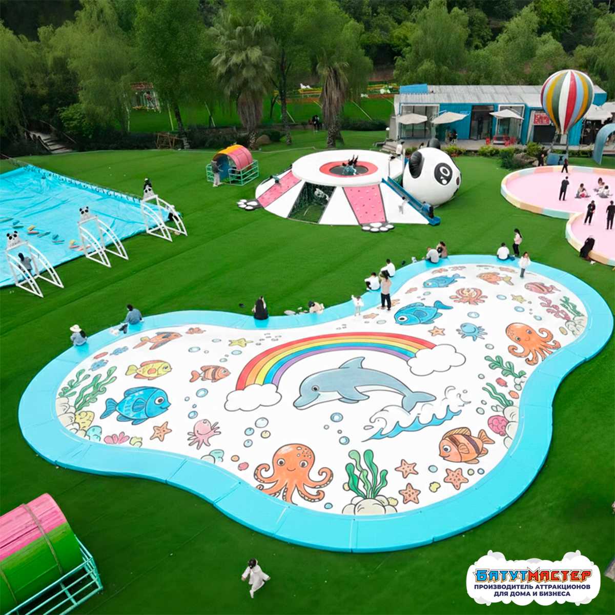 Надувная подушка на платформе «Сказка моря» — это стационарный аттракцион, предназначенный для активных игр и прыжков детей и подростков. Её устанавливают в популярных зонах отдыха, чтобы создать безопасное и привлекательное пространство для развлечений. Благодаря красочному дизайну с морскими животными, подушка мгновенно притягивает внимание и становится центром локации.
