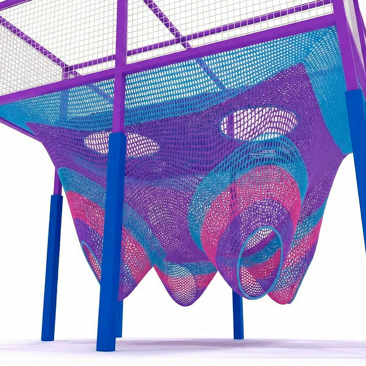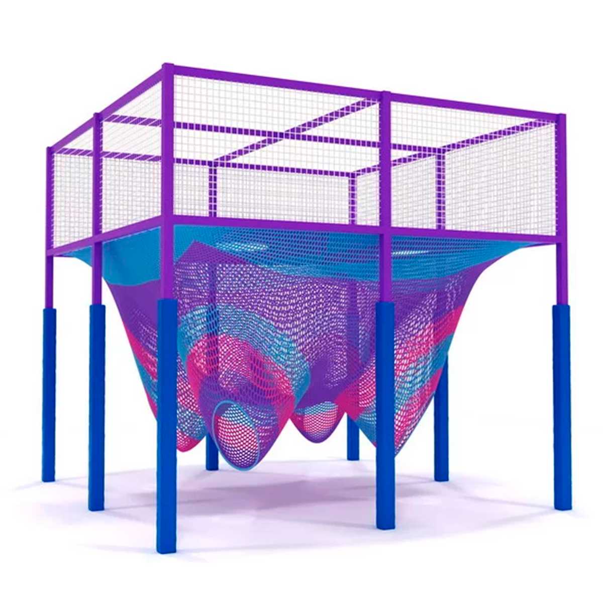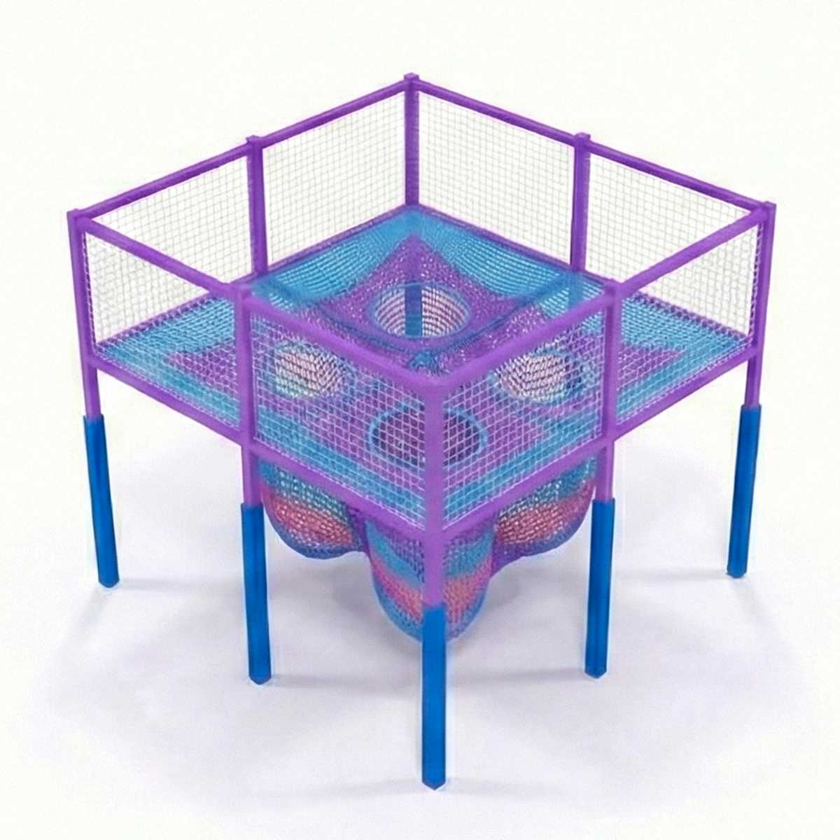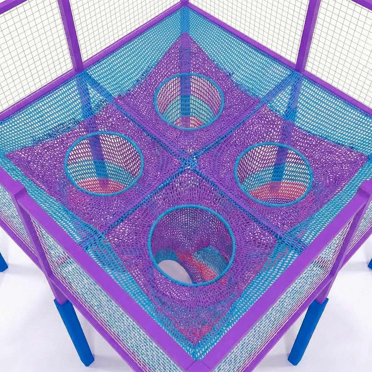 Игровая сетка выполнена из качественного нейлона с яркими цветами: фиолетовым, бирюзовым и розовым. Эти цвета создают космическую атмосферу, погружая ребёнка в фантастический мир. Отверстия и изгибы сетки имеют обтекаемые формы, что делает передвижение комфортным и безопасным.