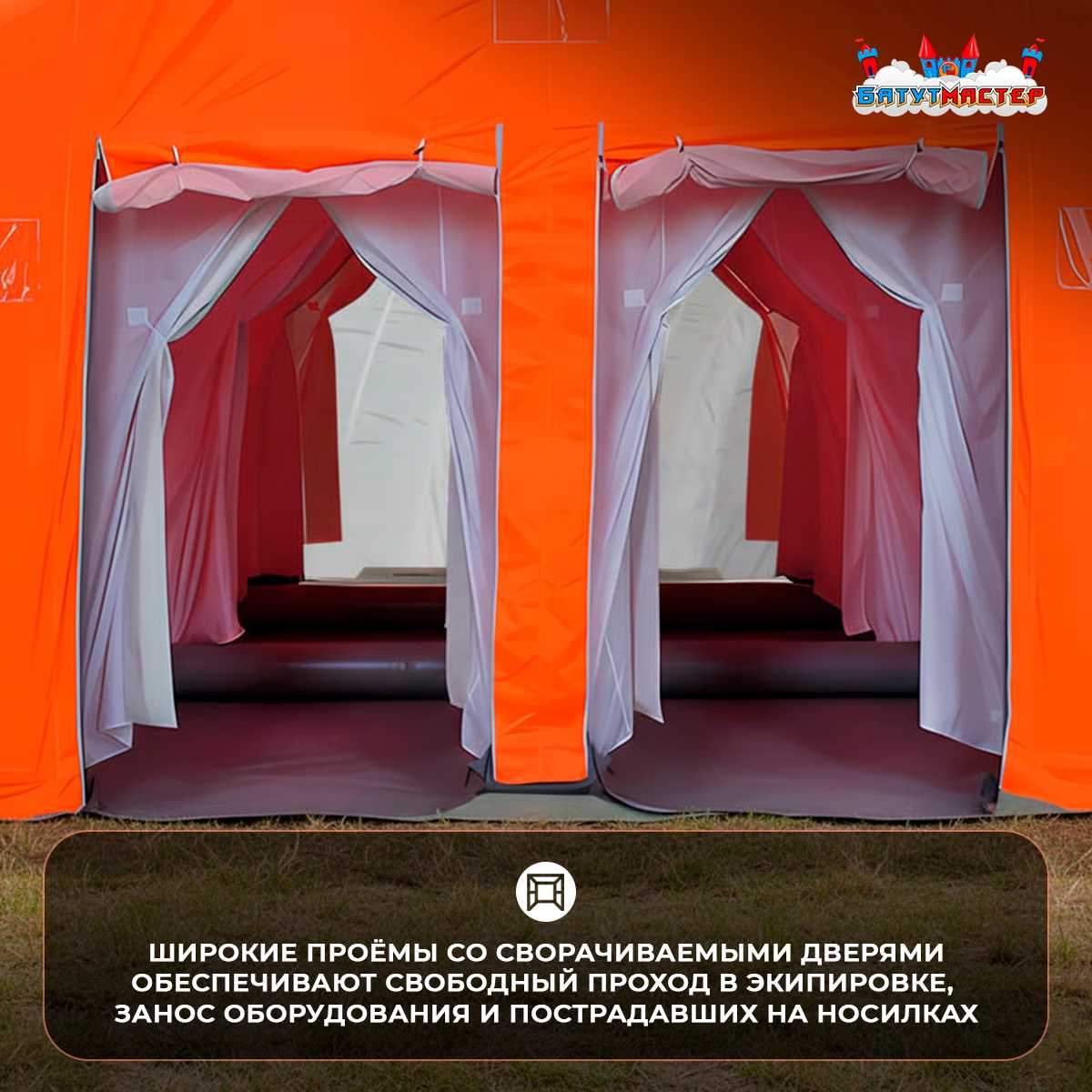 Широкие входы с возможностью сворачивания штор позволяют беспрепятственно заносить оборудование и носилки с пострадавшими, не создавая заторов. Внутреннее пространство разделено занавесками, обеспечивая дополнительную защиту и гигиену при санитарной обработке.