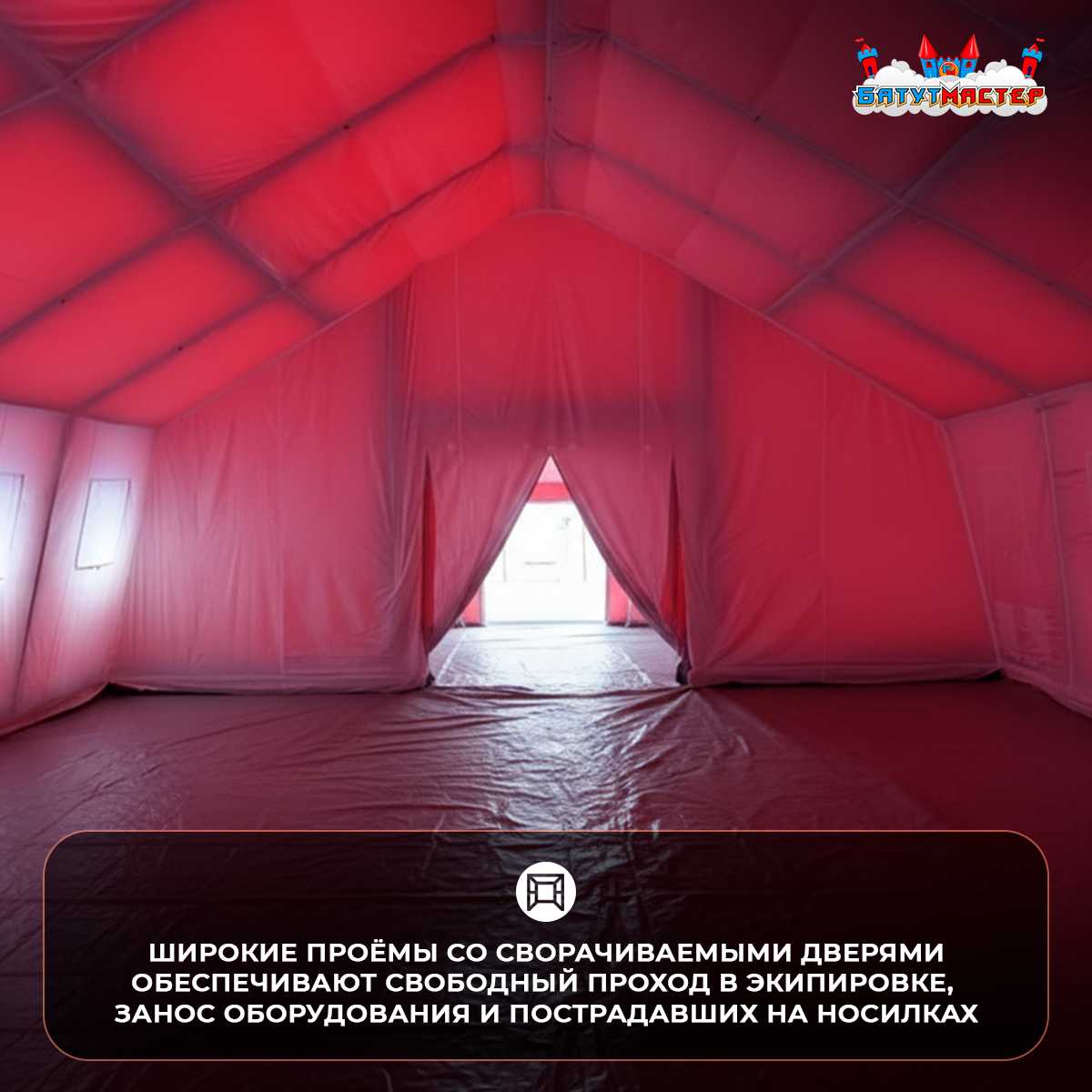 Широкие проёмы с отворотами обеспечивают свободный проход в экипировке, удобное внесение оборудования и транспортировку пострадавших на носилках. Просторное внутреннее помещение позволяет организовать рабочее пространство с максимальным комфортом.