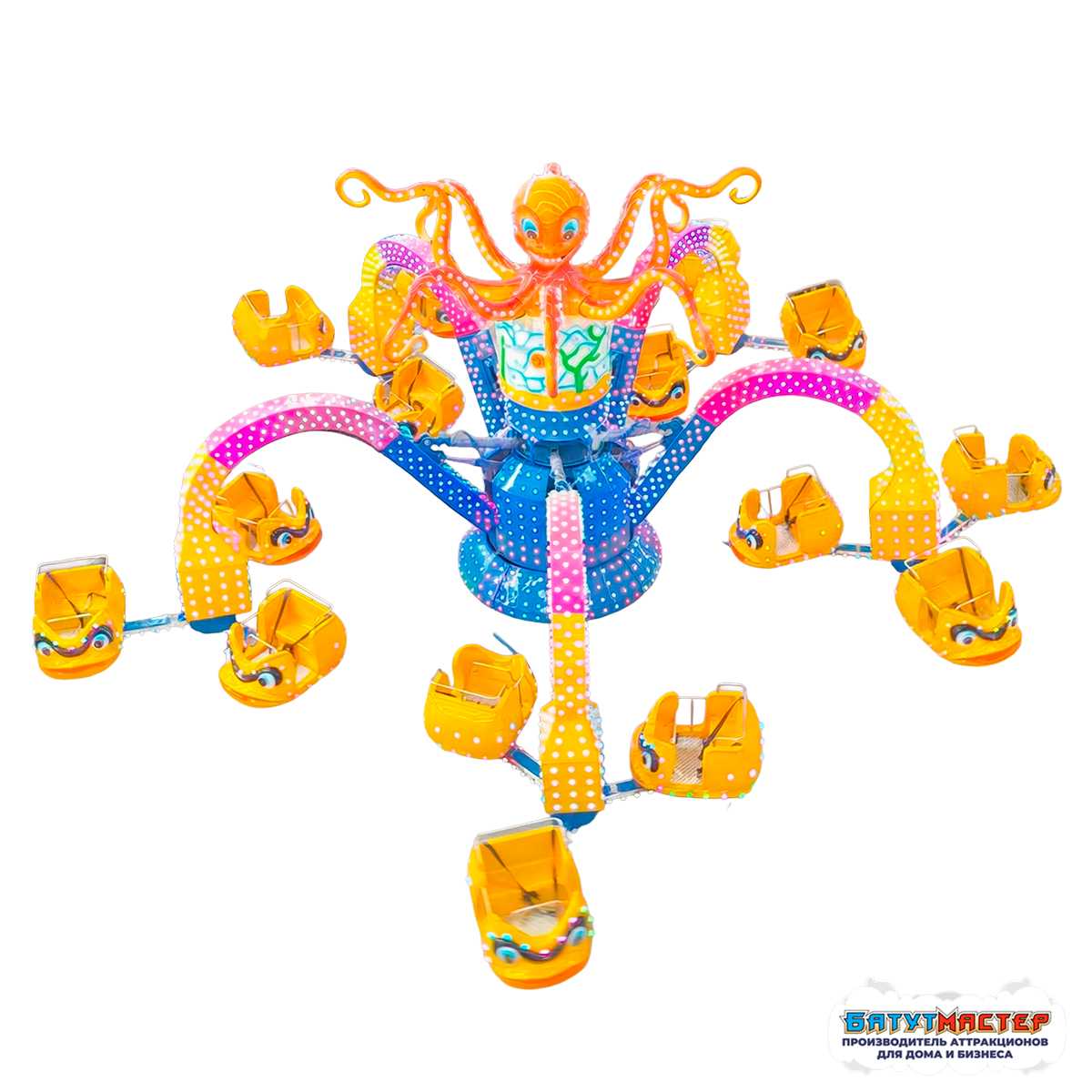 Карусель осьминог «Глубоководный» — это не просто развлечение, это настоящее подводное шоу! Аттракцион выполнен в морской тематике: центральную часть занимает гигантский улыбающийся осьминог, а вокруг него расположены 15 ярко-оранжевых кабинок в виде морских обитателей. В каждой кабинке могут разместиться двое пассажиров, что в сумме даёт 30 посадочных мест — оптимальное решение для обеспечения высокой проходимости в пиковые часы.