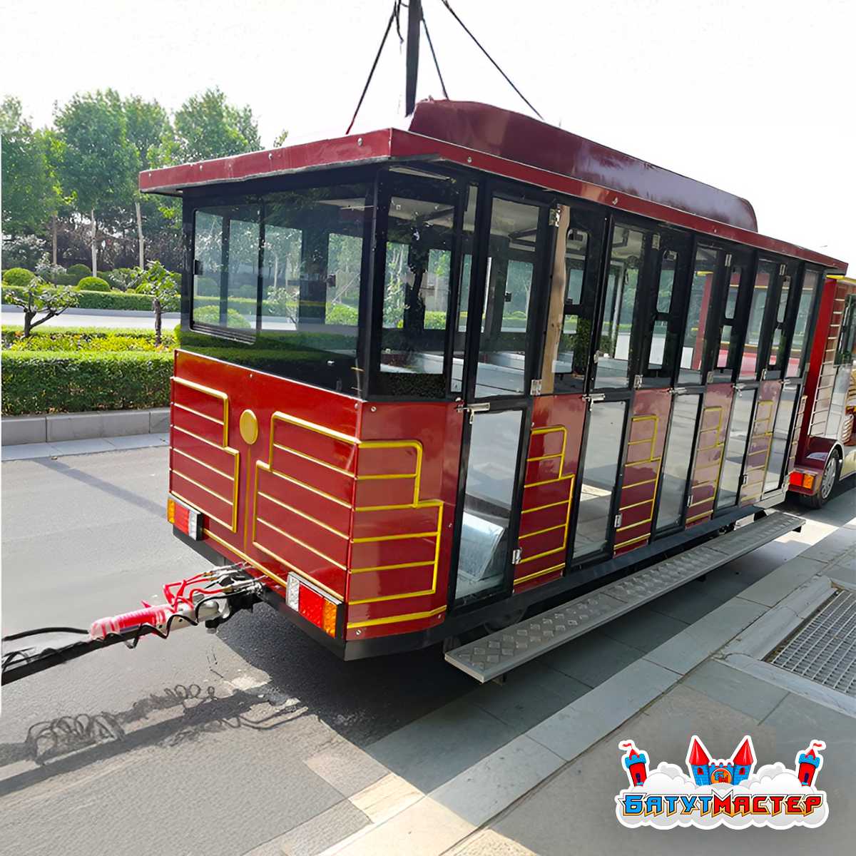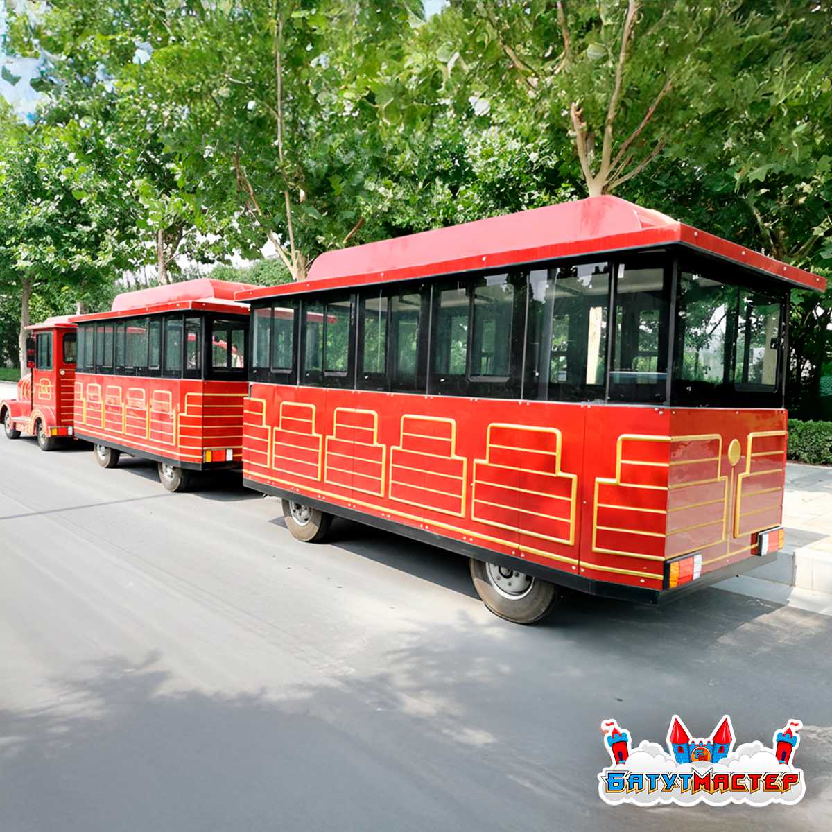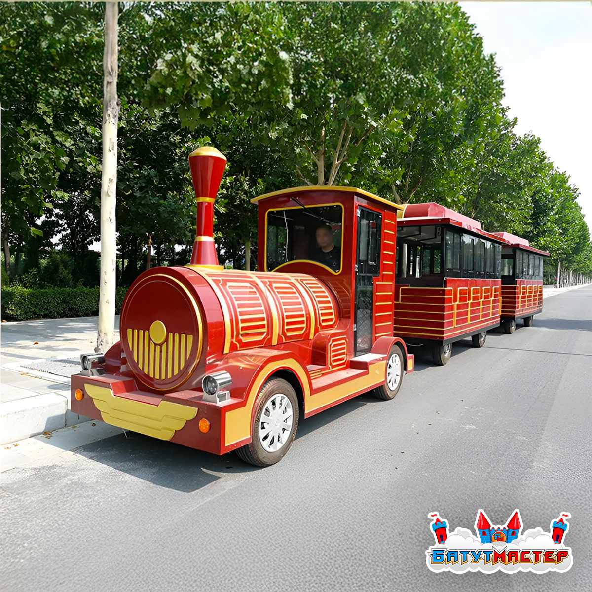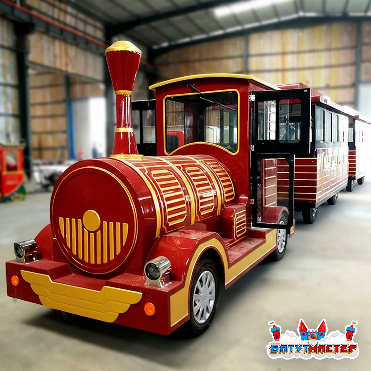 Каждая поездка в этом поезде — как отдельная история, полная веселья, света и детского смеха. Его элегантный, ярко-красный кузов с золотистыми акцентами, округлый паровозный передок и стилизованная труба создают эффект присутствия настоящего ретро-паровоза, вызывая восторг у детей и интерес у взрослых. Светодиодная подсветка, музыкальное сопровождение и безупречная детализация превращают «Звёздный рейс» в шоу на колёсах.