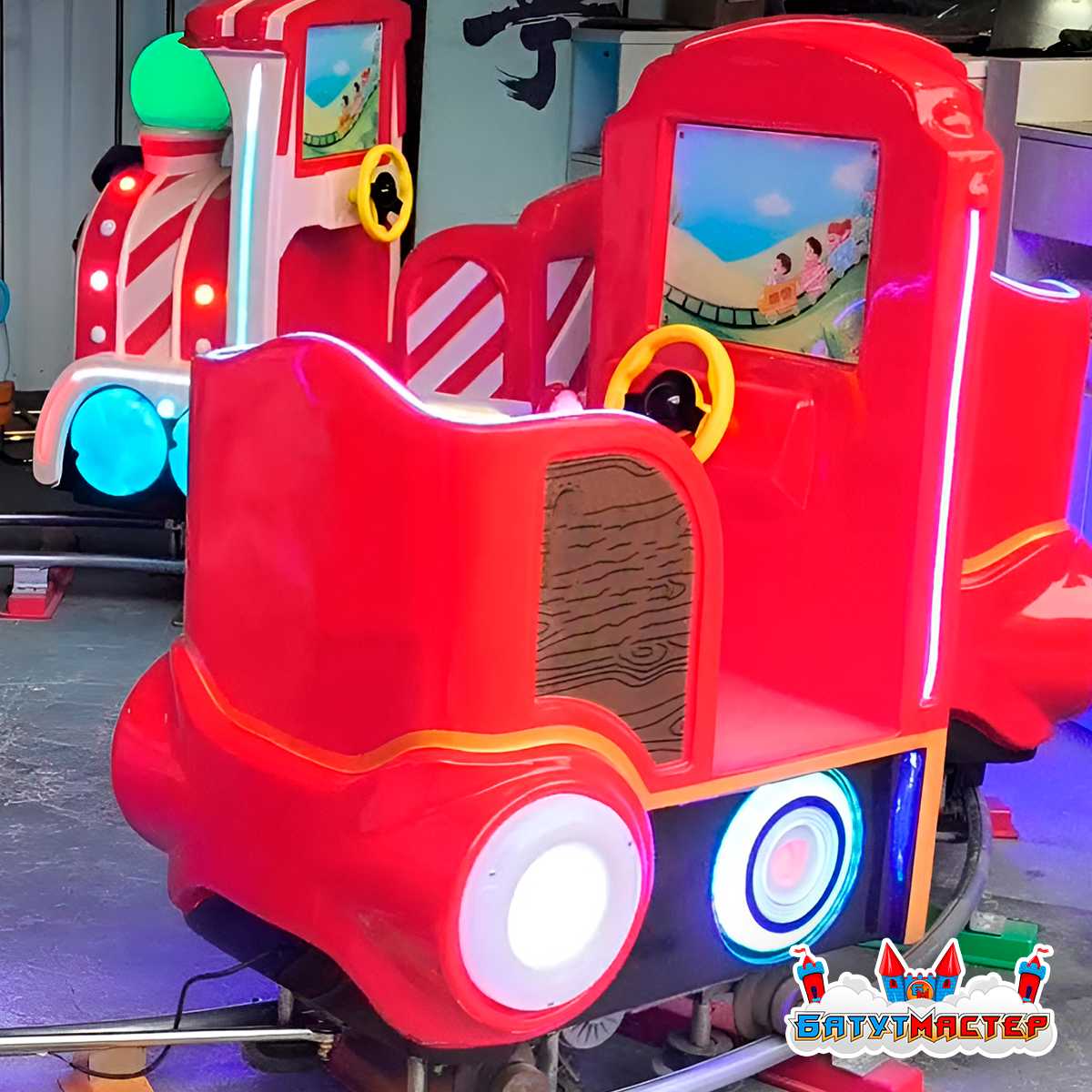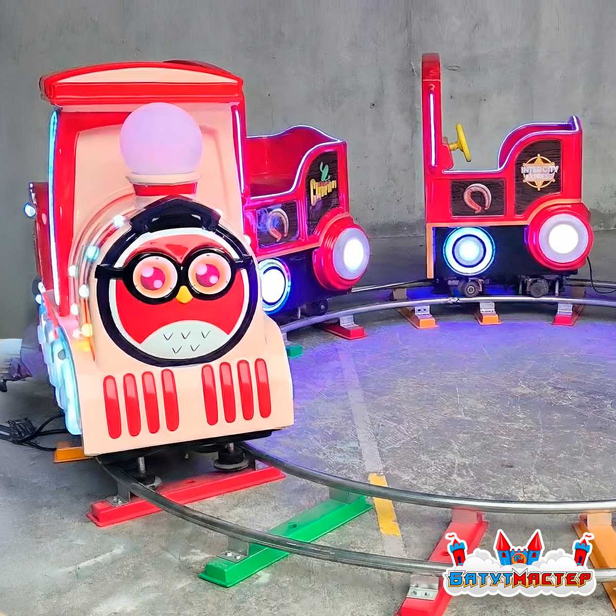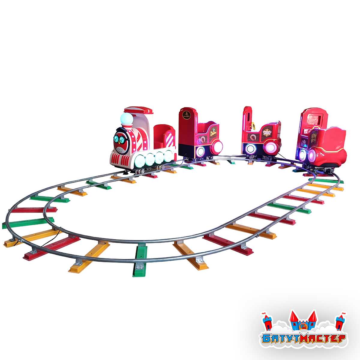 Аттракцион движется по фиксированному рельсовому маршруту, что делает его особенно безопасным для детей. Управление осуществляется оператором — интуитивно понятно и не требует профессиональной подготовки.