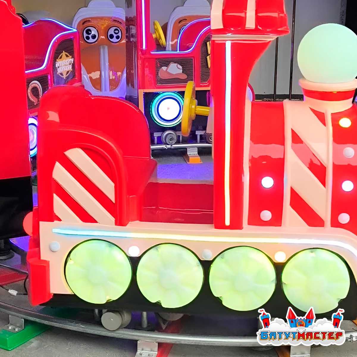 Все элементы соответствуют стандартам безопасности для детских аттракционов и ориентированы на комфорт маленьких пассажиров.