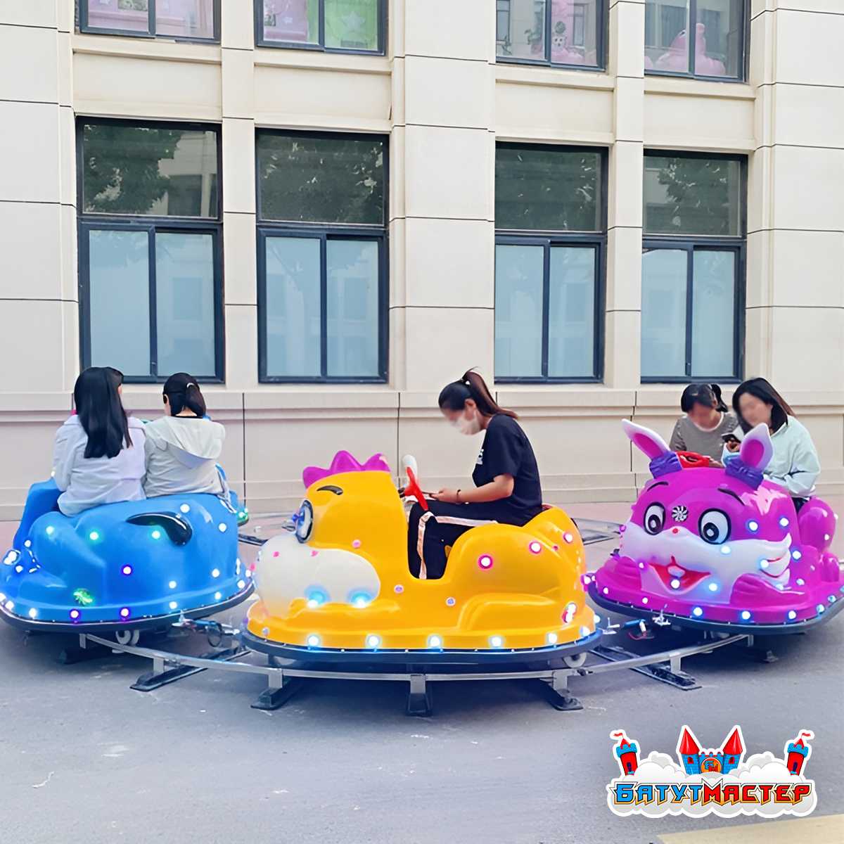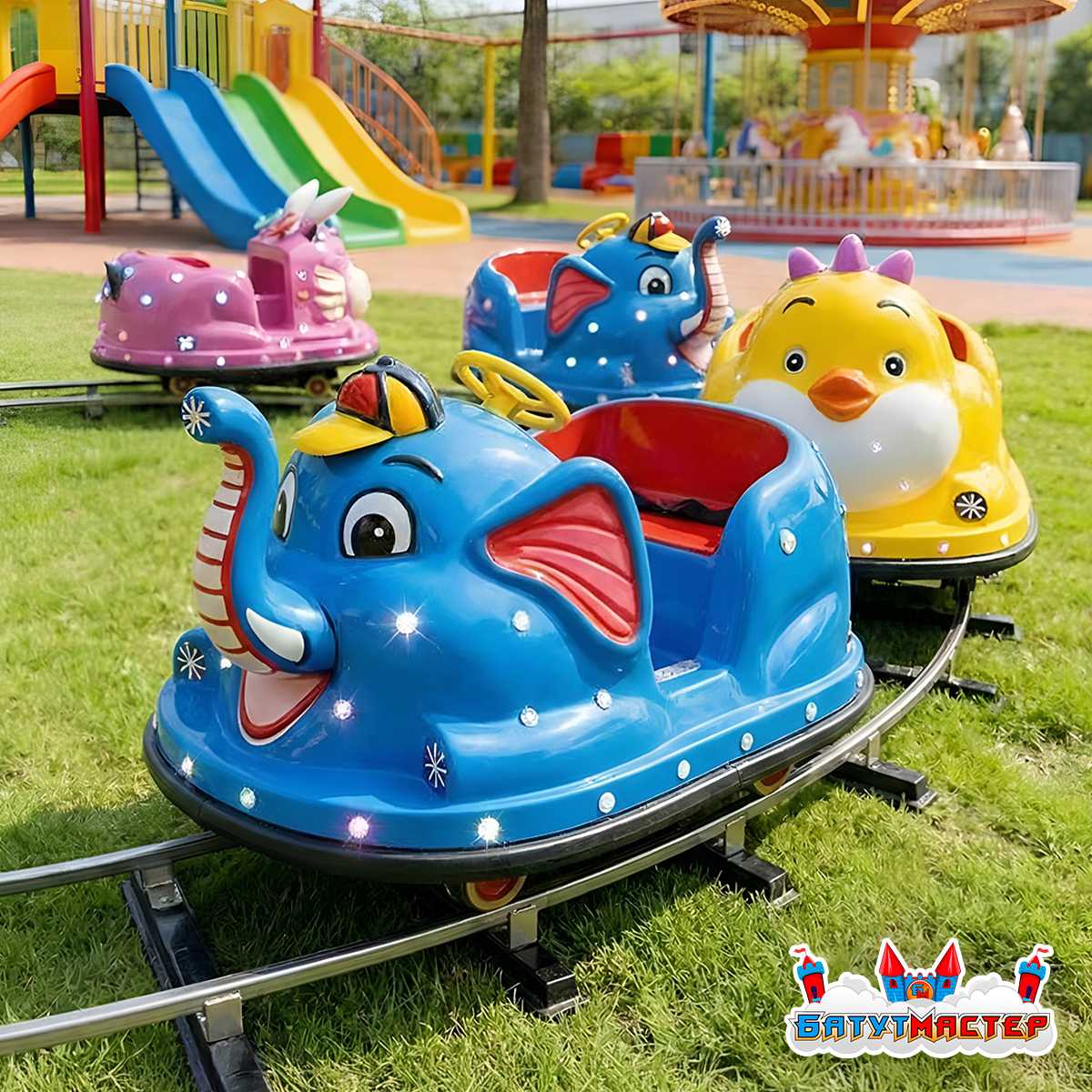 Рельсовый поезд «Сафари» — это настоящий билет в мир приключений. Его дизайн вдохновлён образами дикой природы: улыбающиеся слоны, забавные птенцы и фантазийные зверята приглашают маленьких пассажиров на весёлую поездку. Аттракцион выполнен в насыщенной цветовой палитре, что делает его визуально заметным на любой площадке. Такой поезд легко становится фотозоной и объектом внимания даже издалека, особенно в вечернее время — благодаря встроенной светодиодной подсветке.