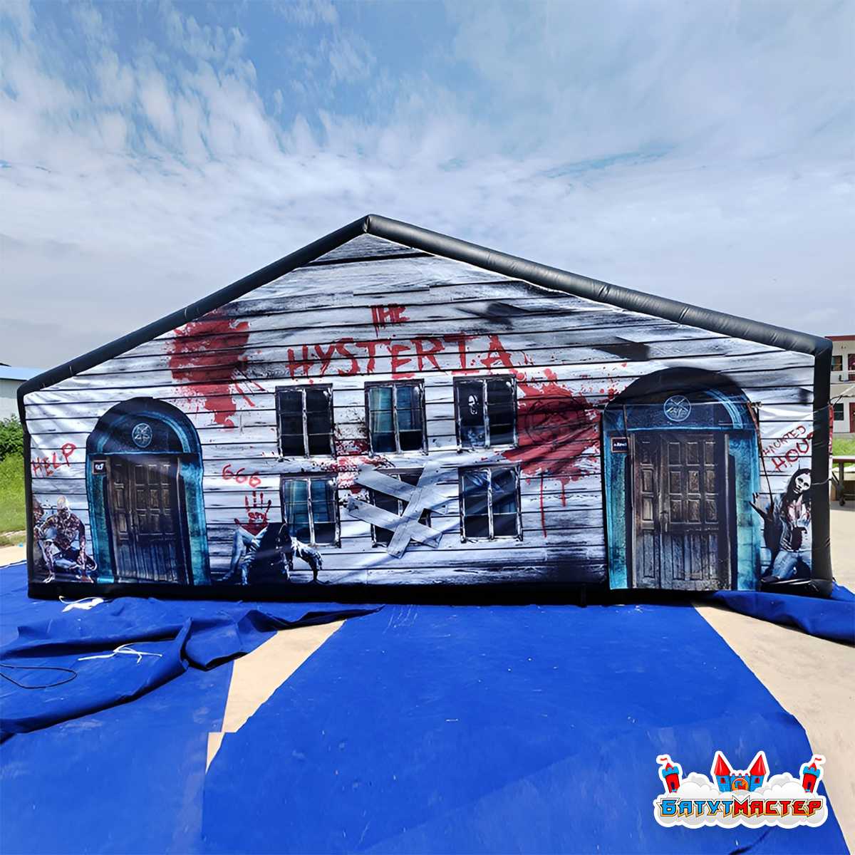 Аттракцион изготавливается прочного армированного ПВХ с огнестойкими свойствами, устойчивого к повреждениям и воздействию внешней среды. Он поддерживается за счёт системы непрерывного нагнетания воздуха и сохраняет стабильную форму на протяжении всего времени работы.
