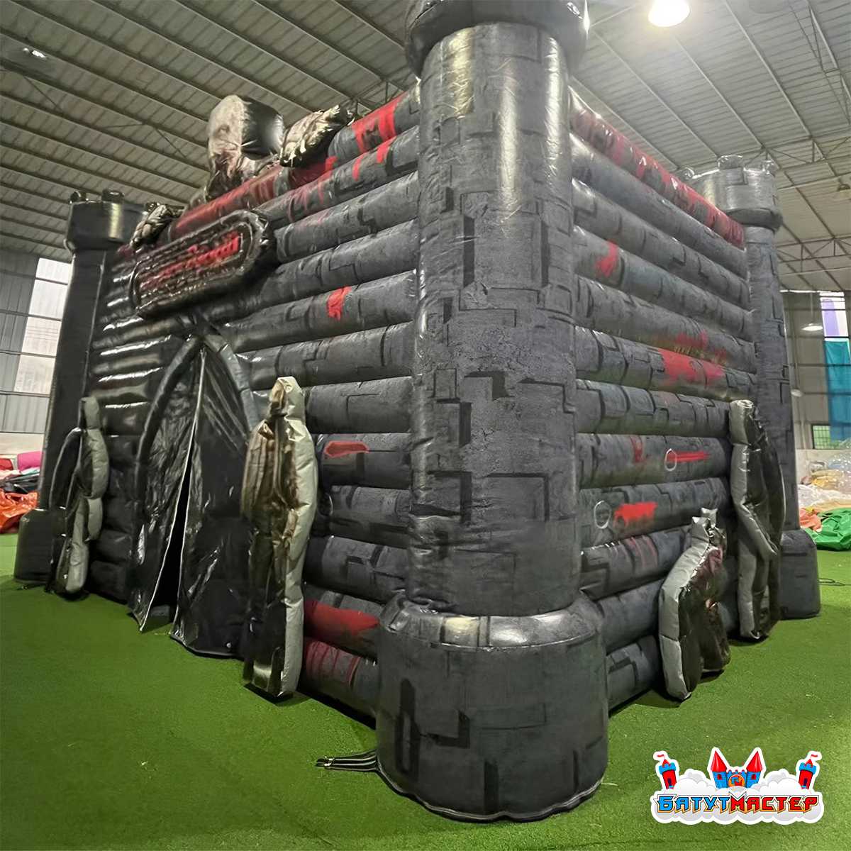 «Башня ужаса» 10x8x4 м — это не просто комната страха, а полноценная хоррор-арена, созданная для тех, кто ищет мощные эмоции и любит острые ощущения. Аттракцион оформлен в виде старинной крепости с массивными башнями, арочным входом и пугающими фигурами зомби, выныривающими из стен. Кровавые отпечатки, надпись Escape Room, громадные руки монстра, свисающие с крыши, — всё в этом оформлении буквально кричит: "Смелым вход разрешён!"
