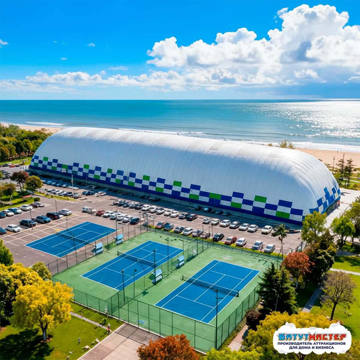 Благодаря материалу ПВХ, купол обеспечивает комфортные условия все 365 дней в году. Внутри поддерживается стабильная температура, вне зависимости от погоды. Это возможно благодаря специальной теплоизоляции, вентиляционной и отопительной системам, которые работают автоматически.