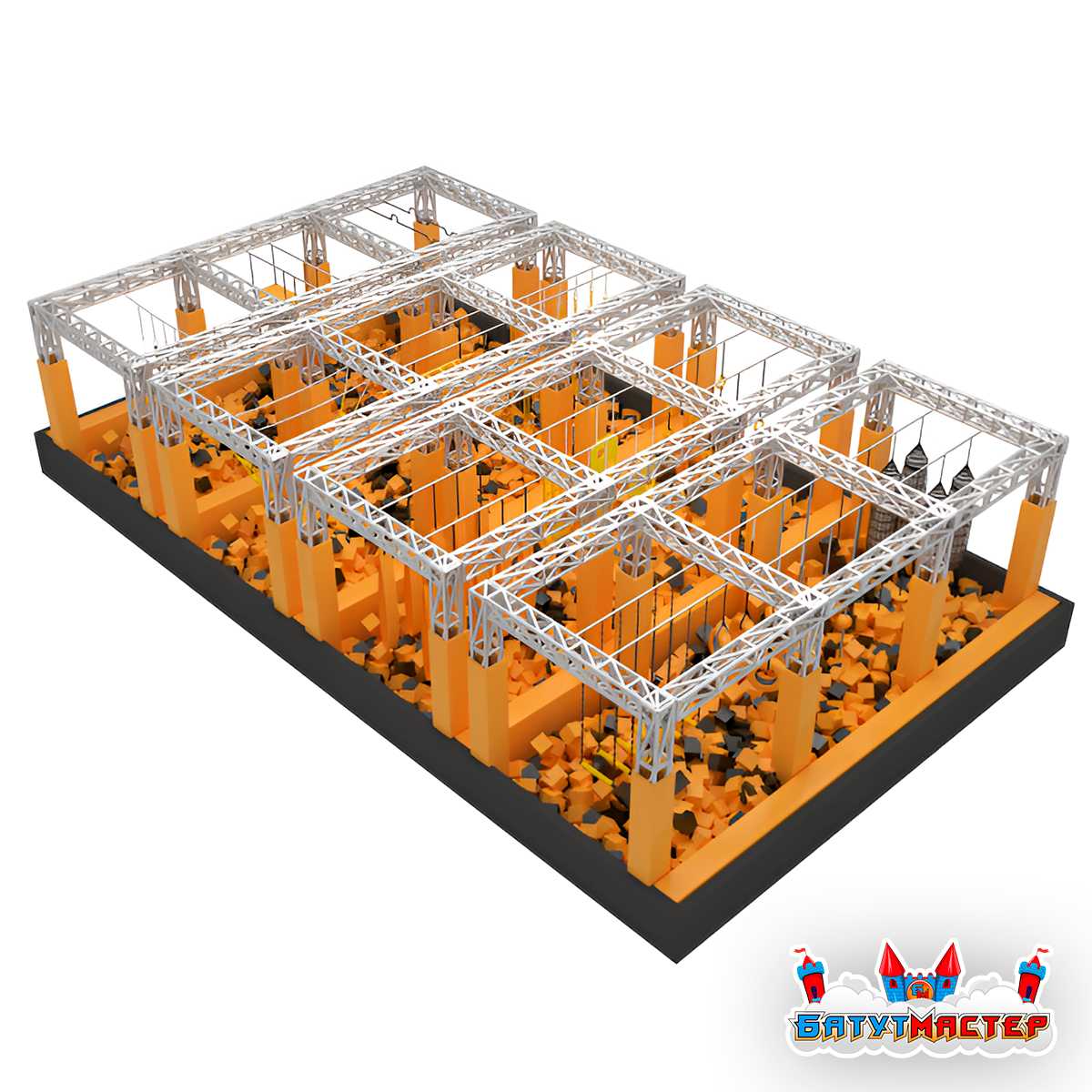 «Мир Воинов» — современный Ниндзя-парк площадью более 110 м², созданный для тех, кто стремится развивать физическую активность посетителей, увеличивать посетительский поток и выделяться среди конкурентов. Его размеры 12×9,5×3,5 м позволяют разместить в компактном пространстве многофункциональную полосу препятствий, состоящую из рукоходов, канатных конструкций, подвесных элементов, сеток, переходов и других модулей, которые формируют динамичную и увлекательную трассу.