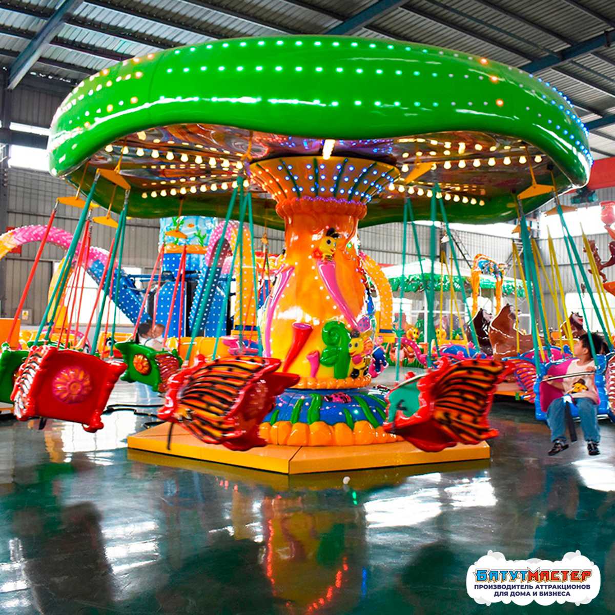 Представьте себе яркую солнечную поляну, где каждый цветок будто оживает, а воздух наполнен лёгким ожиданием чуда. Именно такую атмосферу создаёт подвесная карусель «Цветочная Поляна». С первых секунд взгляд посетителей притягивает сияющее оформление, а плавное движение сидений напоминает воздушный танец. Это аттракцион, который дарит эмоции ещё до того, как первый пассажир займёт своё место 😊