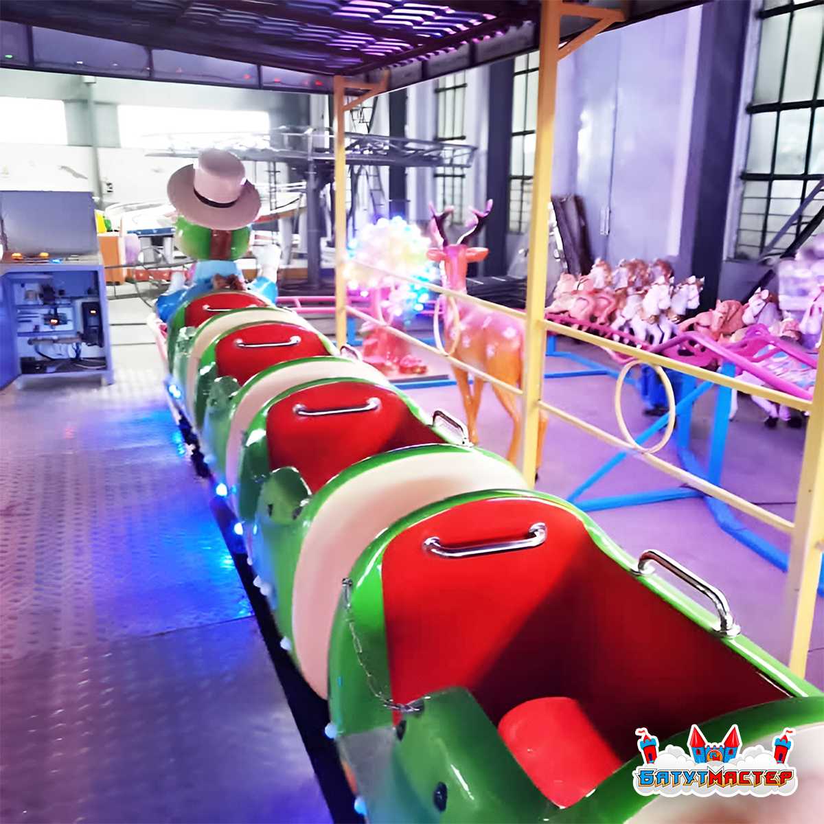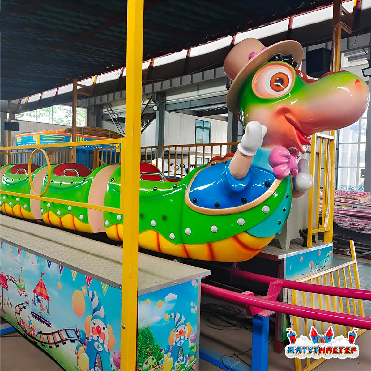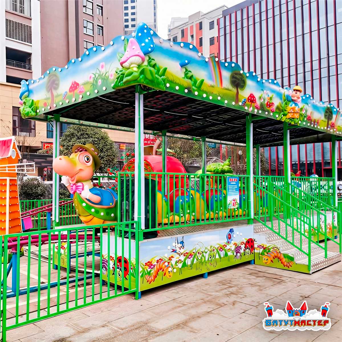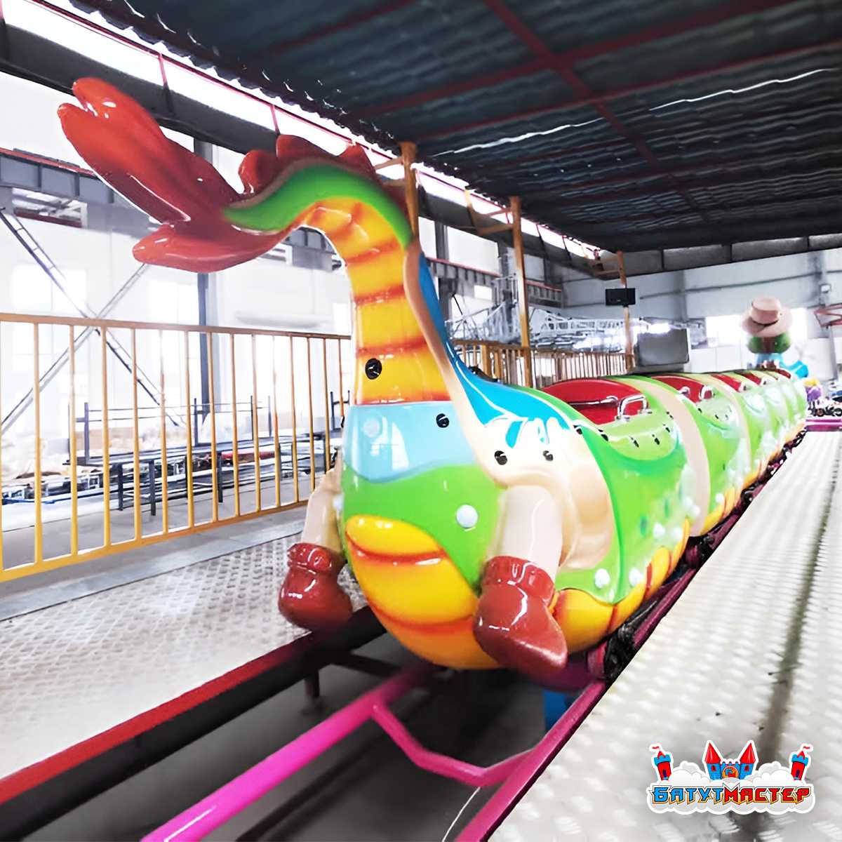 Мультяшная гусеница с забавными чертами, яркой расцветкой и дружелюбным характером создаёт уникальный эмоциональный эффект. Она мгновенно выделяется среди других аттракционов и становится фотозоной, благодаря которой рекламный контент распространяется самостоятельно — через семьи, которые делятся снимками в соцсетях.