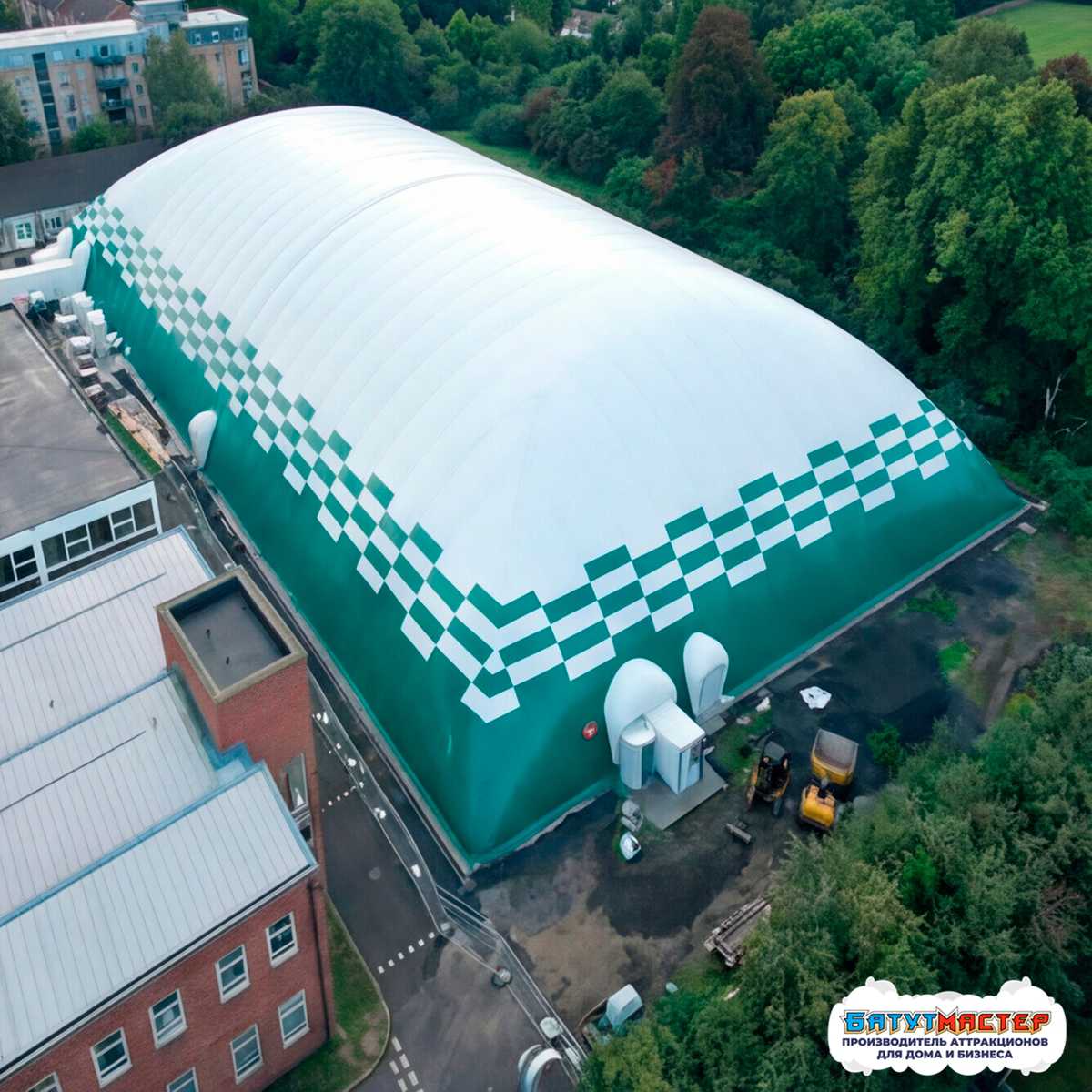 Система поддержания давления поддерживает форму купола и создаёт комфортный микроклимат, снижая потребление энергии. Благодаря мобильности конструкцию можно установить на ровный грунт, бетон или асфальт.