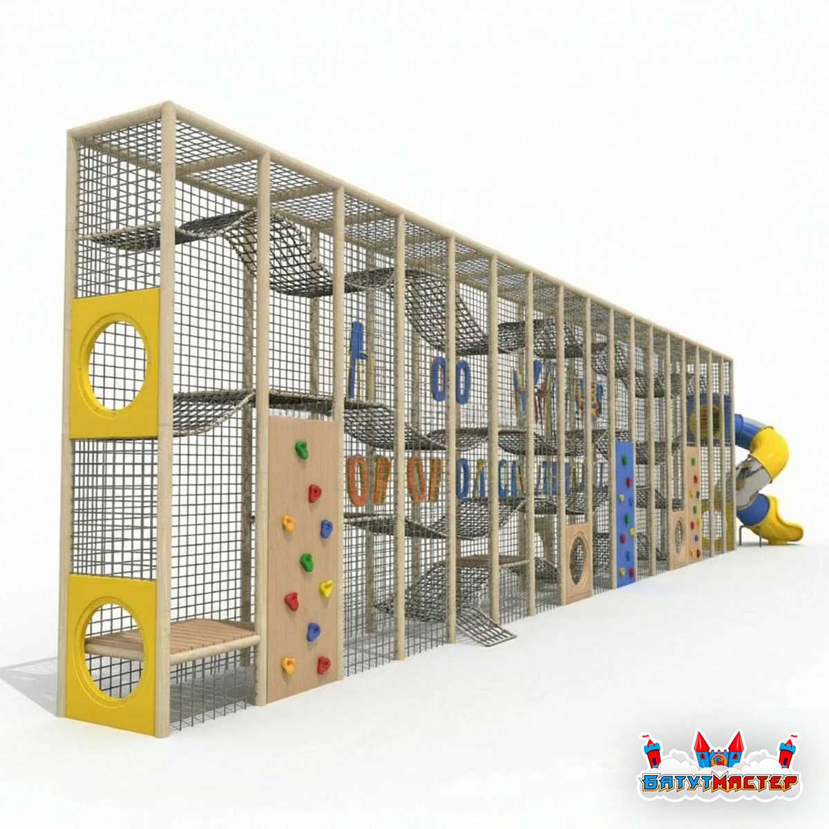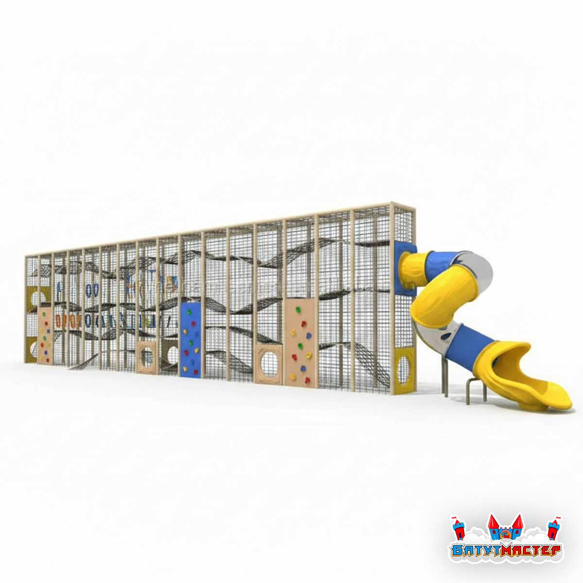 Основа комплекса — многоярусные сеточные переходы, расположенные на разной высоте. Они создают эффект воздушного маршрута и стимулируют активное движение. Внутри размещены: