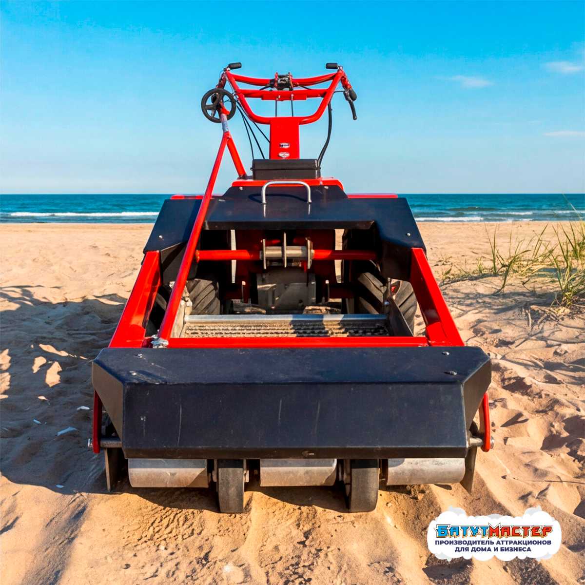 Гусеницы обеспечивают оптимальную тягу и контролируемость машины, что особенно важно при работе на протяжённых пляжах с неоднородной плотностью покрытия.