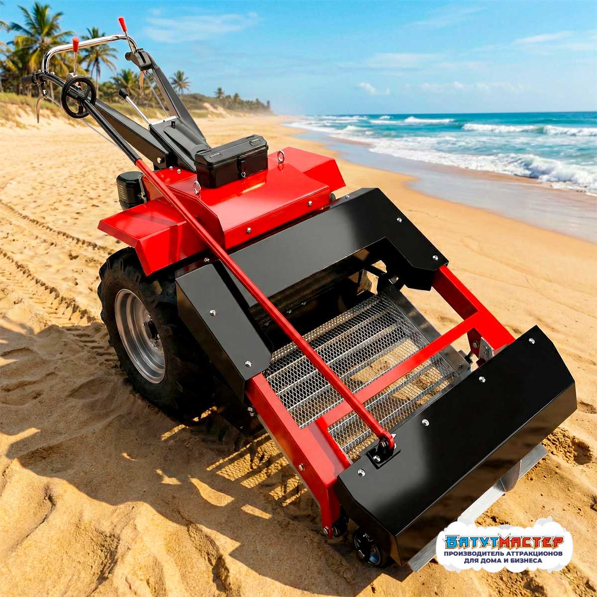 Производительность 2400 м²/ч позволяет обрабатывать территорию размером 100×24 м всего за час. Это идеальный показатель для отелей, пляжных комплексов и муниципальных пляжей, где важна скорость обслуживания.
