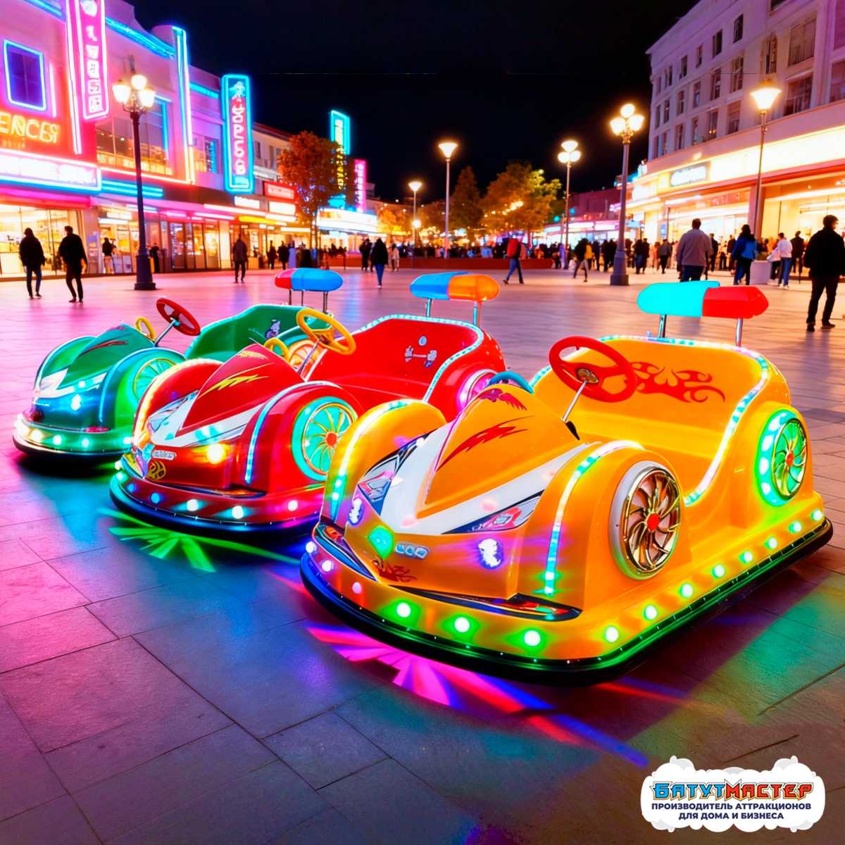 Яркий гоночный дизайн, светящиеся декоративные элементы, удобные сиденья и интуитивное управление создают незабываемый опыт для маленьких посетителей.