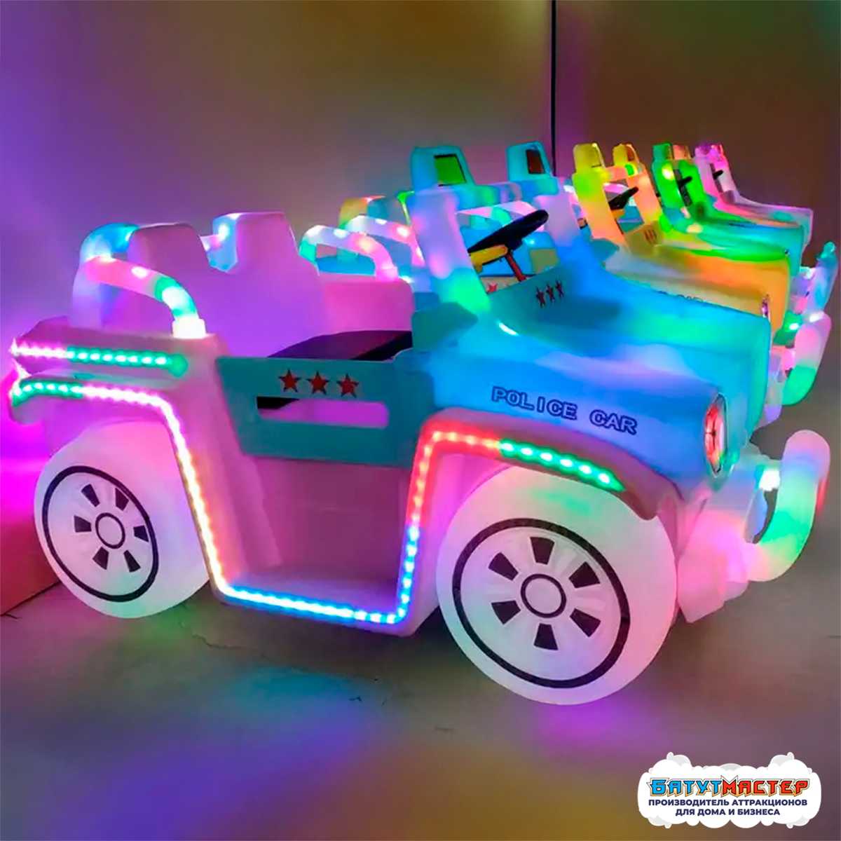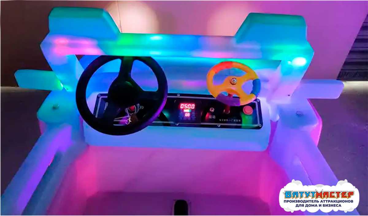 Благодаря эффектной подсветке автомобиль выделяется среди других аттракционов и особенно ярко смотрится в закрытых помещениях и в вечернее время. Это напрямую влияет на поток клиентов и увеличивает длительность их пребывания в развлекательной зоне.