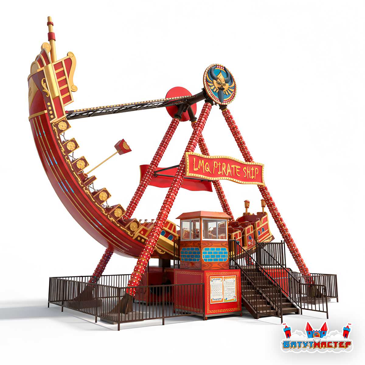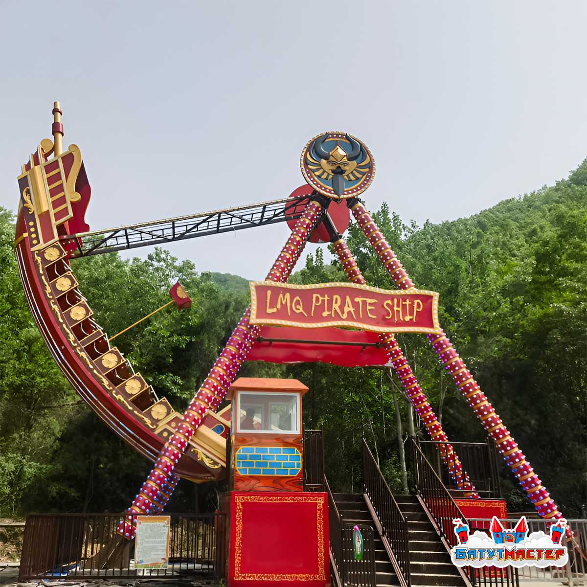 Пиратский корабль «Красная жемчужина» представляет собой яркий и эффектный аттракцион, который привлекает внимание с первого взгляда. Этот уникальный аттракцион обладает всеми характеристиками, необходимыми для того, чтобы стать центром развлечений в любом парке. Яркий пиратский дизайн с элементами старинного корабля, эффектные светодиодные огни и музыка, создающая атмосферу настоящего пиратского приключения, — все это гарантирует незабываемые впечатления для посетителей.