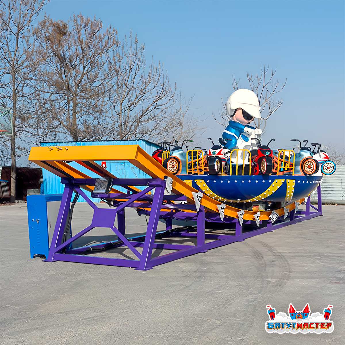 Конструкция аттракциона включает высокопрочные материалы, такие как стекловолокно и сталь, что обеспечивает его долгосрочную эксплуатацию. Система управления полностью автоматизирована, но предусмотрена возможность ручного дублирования, что добавляет удобства в управлении и безопасности.