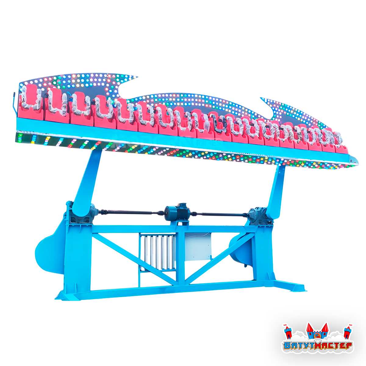 После посадки пассажиров и фиксации ремнями безопасности оператор запускает аттракцион. Электродвигатель через трансмиссионный вал приводит в движение рычажную систему, и платформа начинает равномерно раскачиваться. Амплитуда и скорость нарастают постепенно, достигая рабочей высоты подъёма 3 метра. Именно в этот момент пассажиры испытывают характерное ощущение невесомости — лёгкой, безопасной, но по-настоящему захватывающей. Под аккомпанемент динамичной музыки и мерцание огней каждый цикл превращается в яркое шоу.