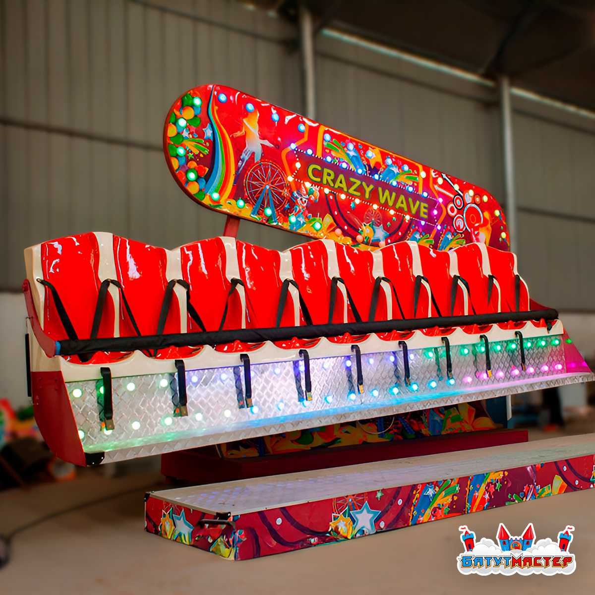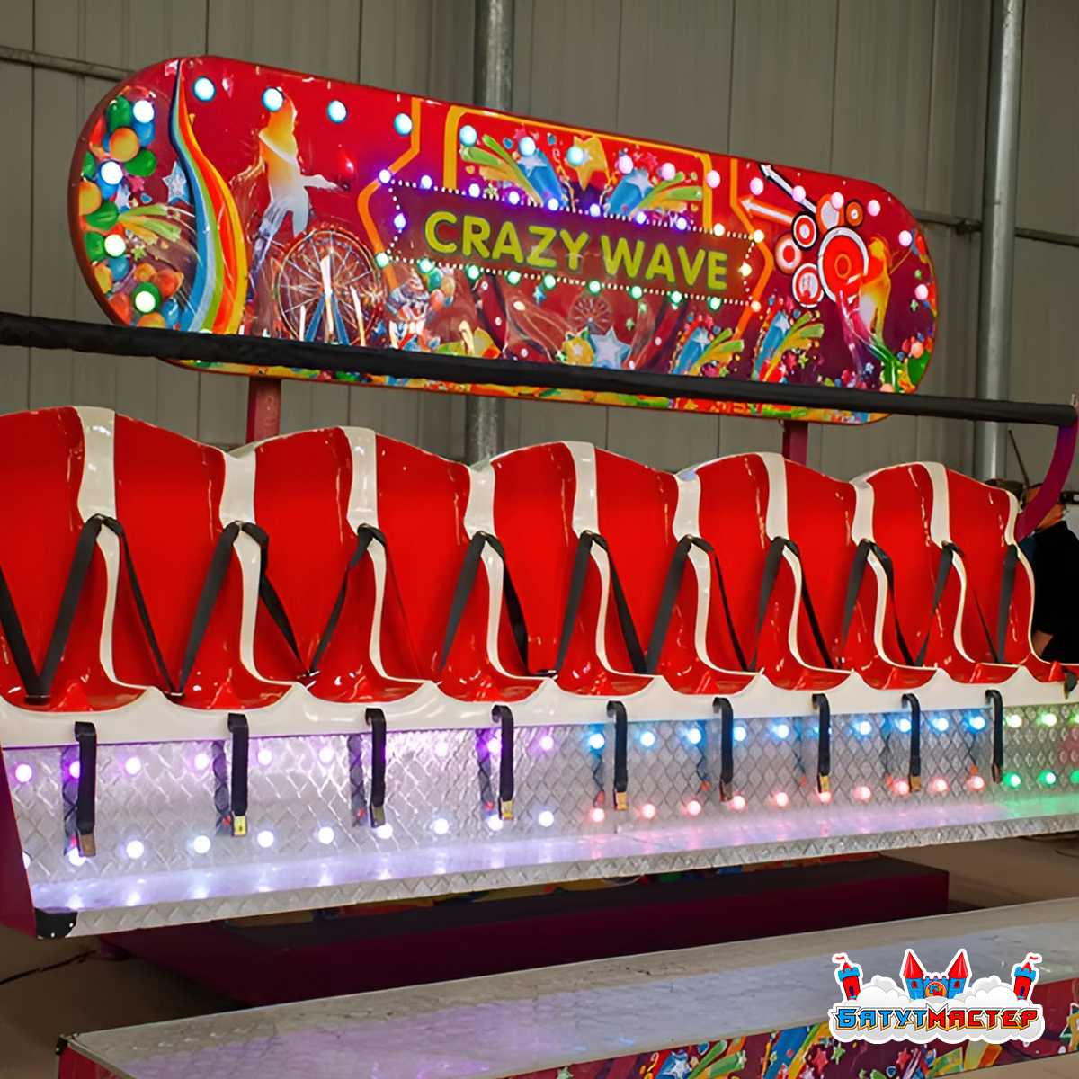 «Полет мечты» — это аттракцион нового поколения, сочетающий зрелищную механику, яркий дизайн и интерактивное управление. Длинный ряд индивидуальных сидений из стекловолокна расположен на наклонной платформе, которая совершает волнообразные движения: каждое кресло поднимается и опускается по очереди, создавая эффект живой, пульсирующей волны. Это не просто аттракцион — это настоящее шоу, в котором зрители на земле с восторгом наблюдают за происходящим не меньше, чем сами участники.