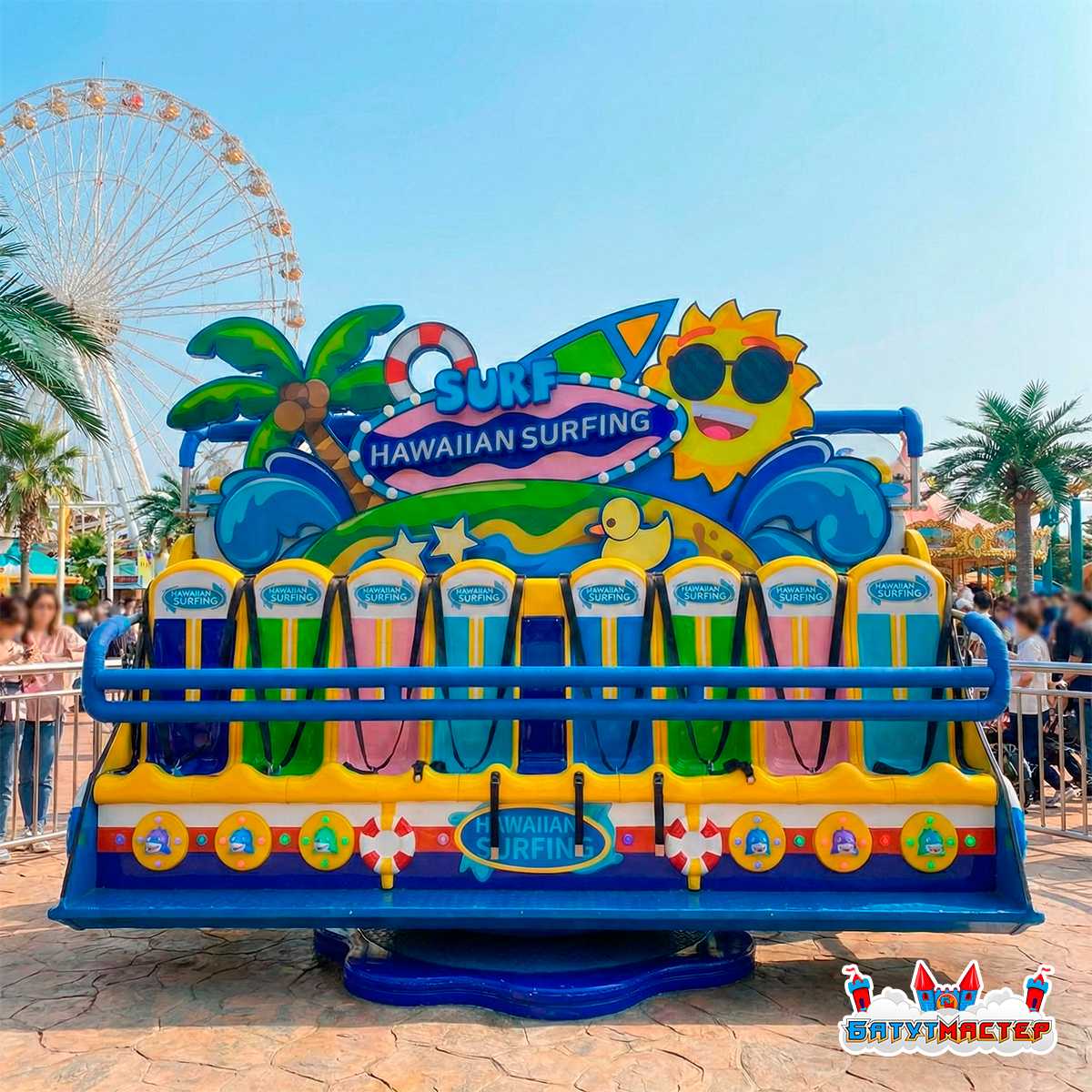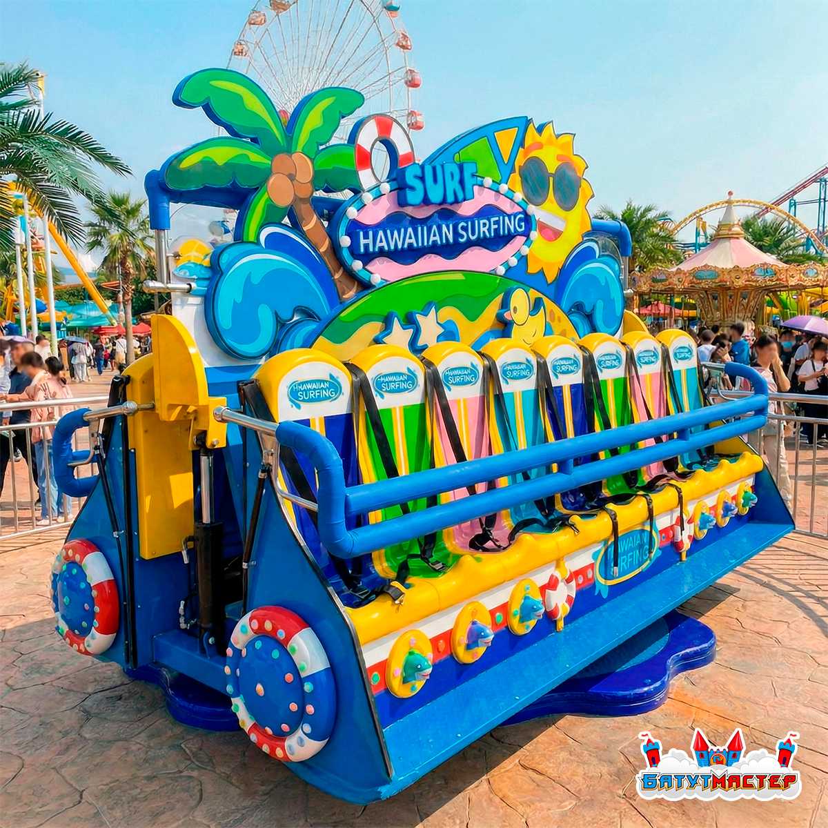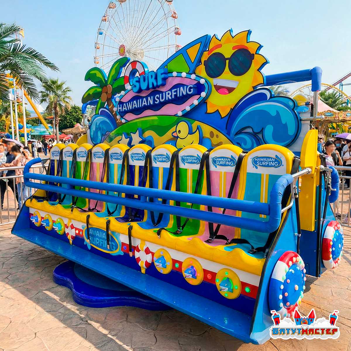 Посетители рассаживаются в ряд на сиденьях с защитными поручнями. После запуска два мощных рычага приводят конструкцию в возвратно-поступательное движение: сиденья плавно и ритмично раскачиваются вверх-вниз и влево-вправо под динамичную музыку. Аттракцион совершает вращение на 360 градусов, а быстрая смена направлений движения создаёт ощущение невесомости, скорости и лёгкого адреналина. Каждый сеанс — это маленькое путешествие над летними волнами.