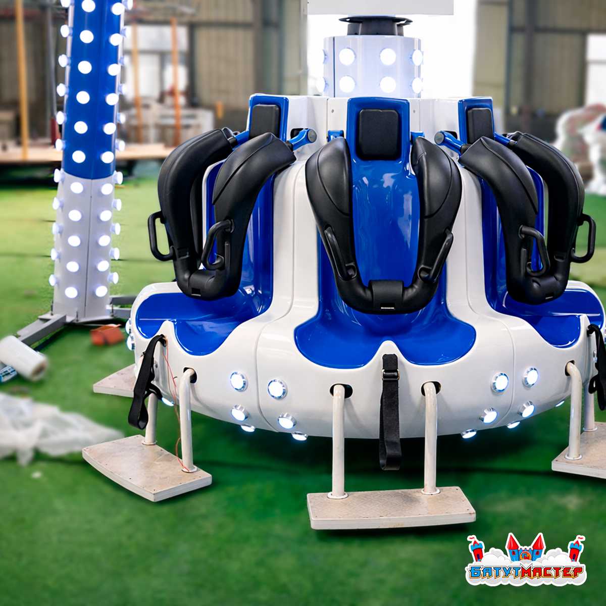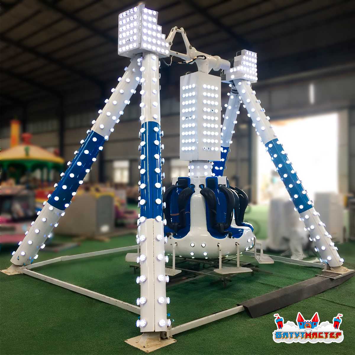 Принцип работы прост и захватывающ одновременно. Пассажиры занимают места в круглой кабине, оснащённой плечевыми фиксаторами и ремнями безопасности. После фиксации аттракцион плавно начинает раскачку, постепенно увеличивая амплитуду до максимального угла 60–80°. Одновременно кабина вращается вокруг своей оси. Нарастающая скорость, смена угла обзора, ощущение невесомости в верхних точках траектории — всё это формирует уникальный эмоциональный опыт, за которым гости возвращаются снова и снова.