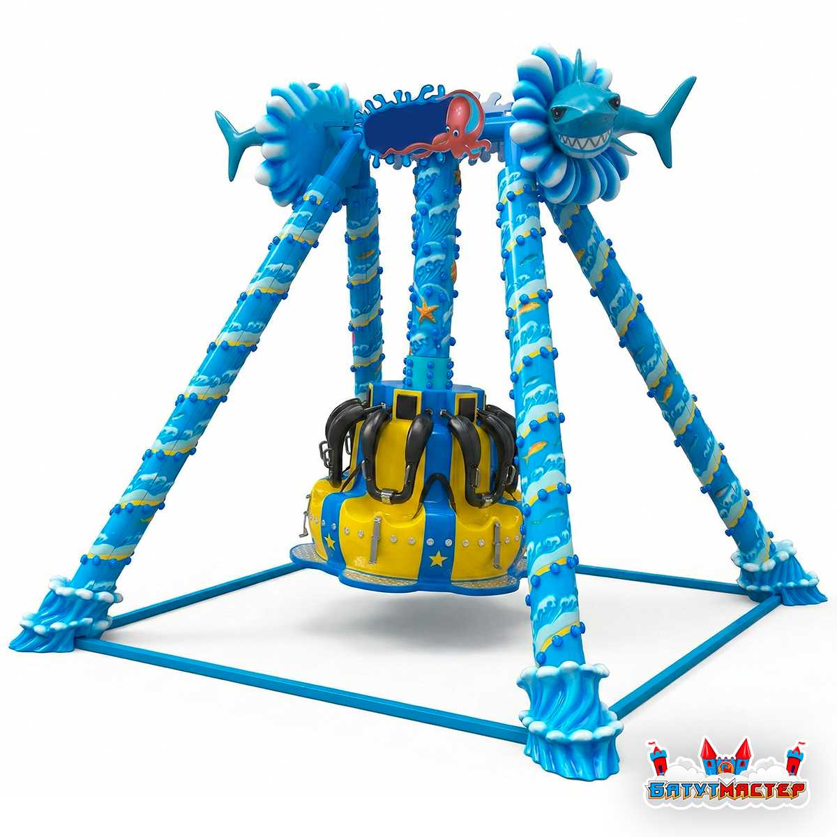 «Гиперпространство» — это маятниковый аттракцион экстремального класса, выполненный в захватывающей морской тематике. Мощные опорные колонны, декорированные под щупальца осьминога и волны, акулы на вершине конструкции и яркая жёлто-синяя кабина с плечевыми фиксаторами — всё это создаёт атмосферу настоящего подводного приключения. Аттракцион рассчитан на коммерческую эксплуатацию и является одним из самых зрелищных экспонатов для любой развлекательной площадки.