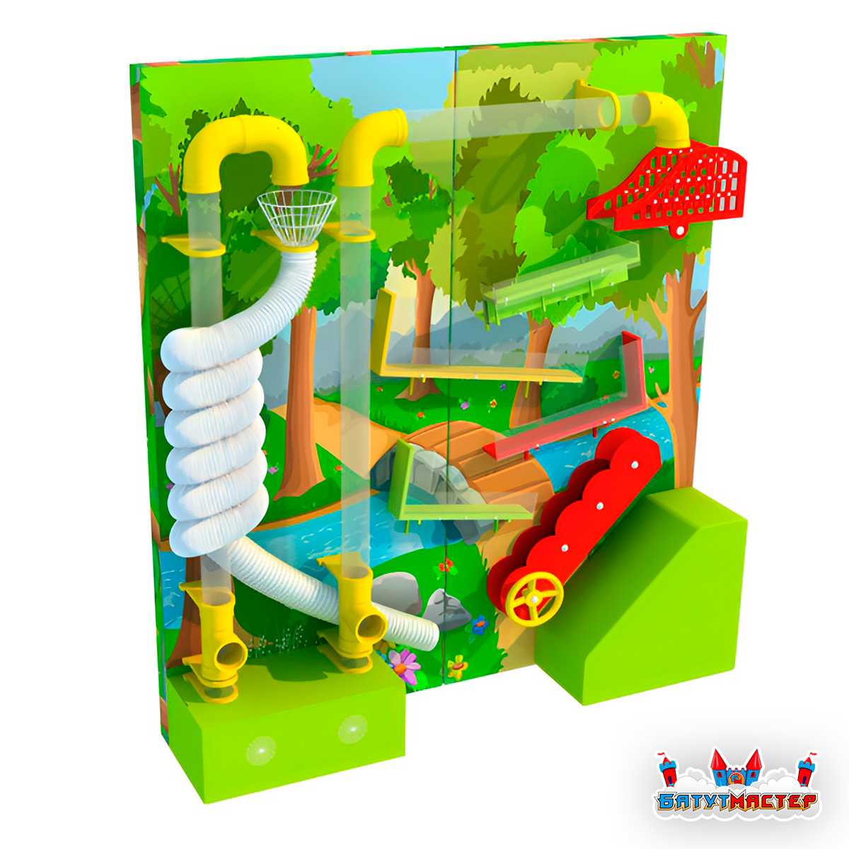 Благодаря разнообразию траекторий и прозрачным элементам дети видят каждый этап движения шарика.
