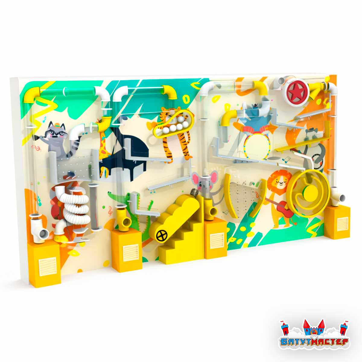 Представьте себе место, где каждый вентиль, трубка и изгиб начинают оживать, превращаясь в волшебный инструмент огромного джунглевого оркестра. Здесь шарики становятся музыкальными нотами, воздушный поток — дирижёром, а дети — маленькими исследователями, которые управляют целой симфонией движений. Пневмолабиринт «Оркестр весёлых джунглей» — это не просто интерактивная стена, а сказочный механизм с характером, который превращает игру в увлекательное приключение и обеспечивает непрерывный поток эмоций.