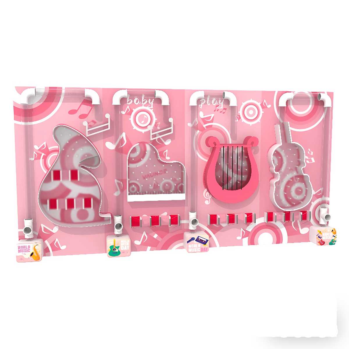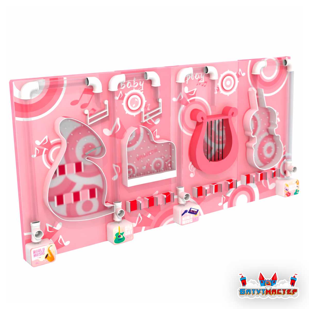 Представьте себе стену, которая оживает от каждого детского прикосновения. Шарики взлетают вверх, исчезают в загадочных трубах, прокатываются через силуэты музыкальных инструментов — барабана, арфы, пианино — словно маленькие ноты, создающие воздушную мелодию приключений. Эта стена не просто украшение, а целая чарующая вселенная, куда дети погружаются с восторгом и удивлением.