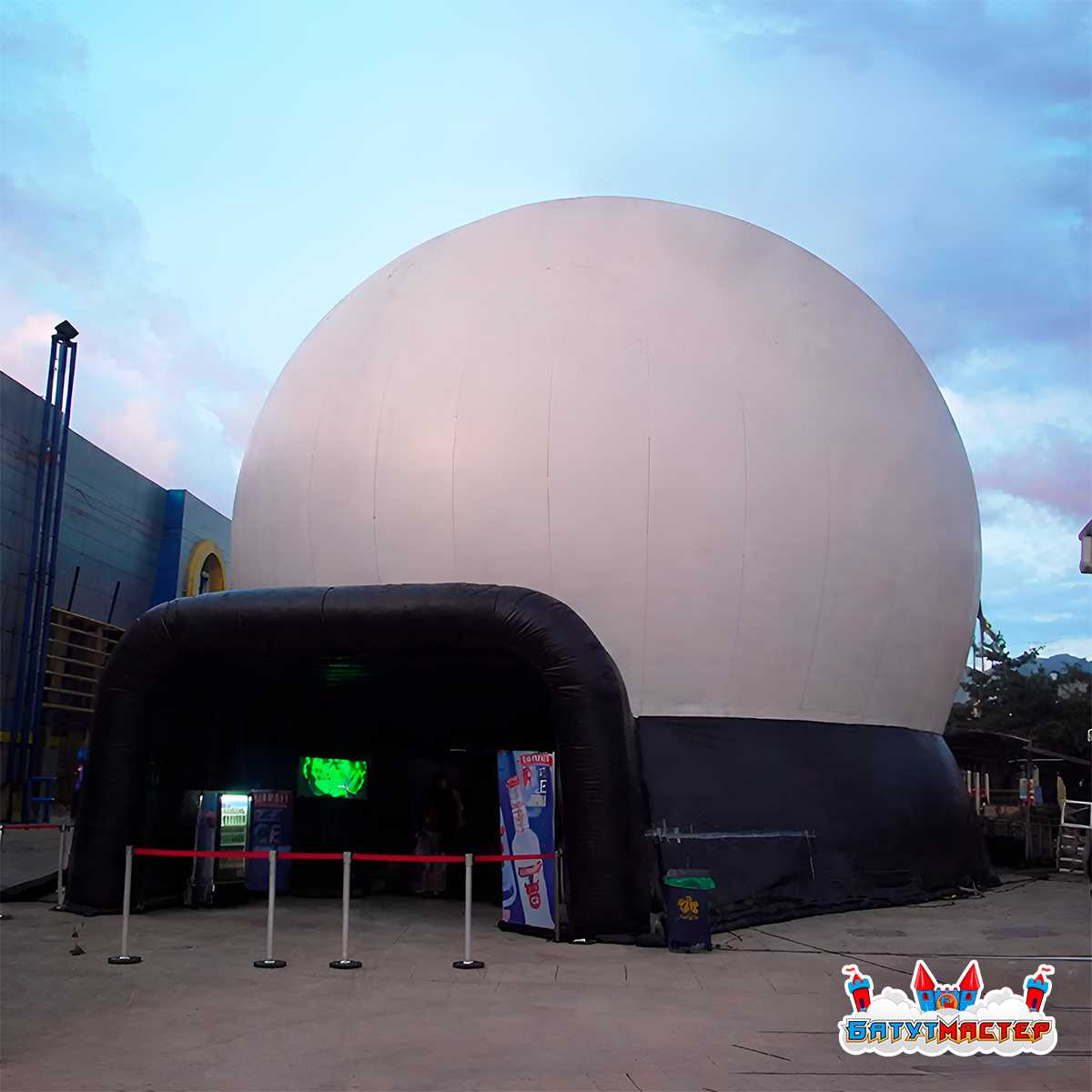 Планетарий не сдувается при открытии входа — это принципиально важное преимущество. Посетителей можно впускать и выпускать прямо во время сеанса, при этом купол не проседает и не теряет форму.