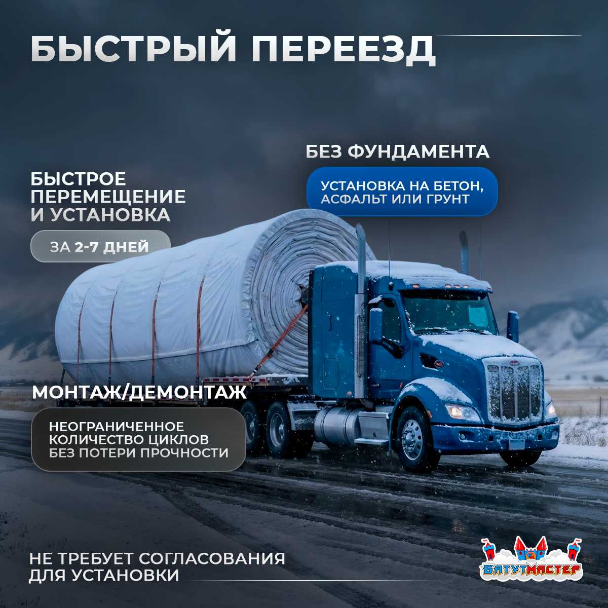 Пневмокаркасный авиационный ангар «Крылья Статуса» 40x25x15 м создан для тех, кто хочет стабильности и свободы одновременно: быстрый монтаж, мобильность, экономия, защита — всё в одном решении.