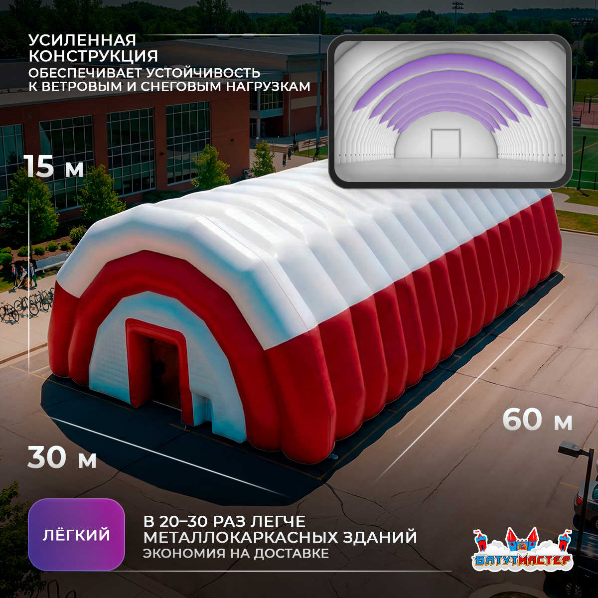 Если вы ищете инструмент для расширения бизнеса, запуска новых форматов мероприятий и выхода в новые регионы — пневмоангар «Мир Событий PRO» 60x30x15 м станет стратегическим активом.