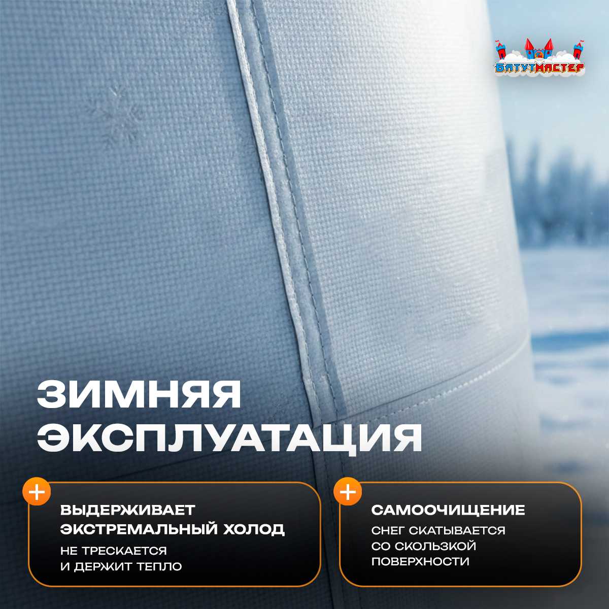 Покрытие изготавливается из армированного ПВХ, устойчивого к влаге, ультрафиолету, перепадам температур и механическим воздействиям. Поверхность обладает эффектом самоочищения — снег естественно скатывается, не создавая избыточной нагрузки зимой.