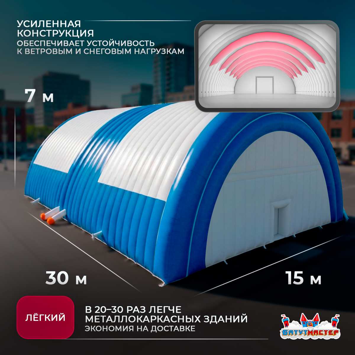 Временный торговый ангар «Торговый Хаб» 30x15x7 м с системой постоянного поддува — это практичное и технологичное решение для быстрого запуска и развития бизнеса.