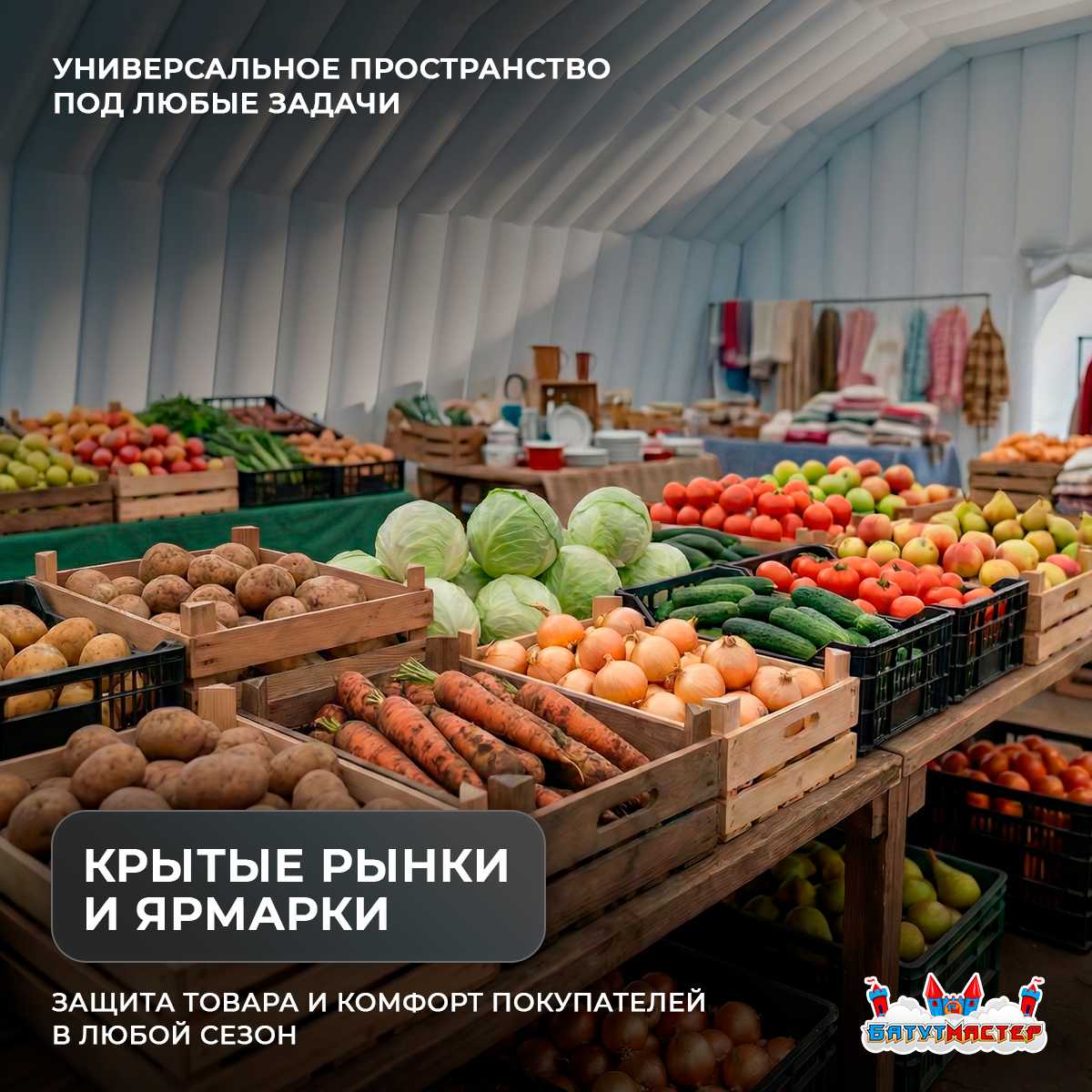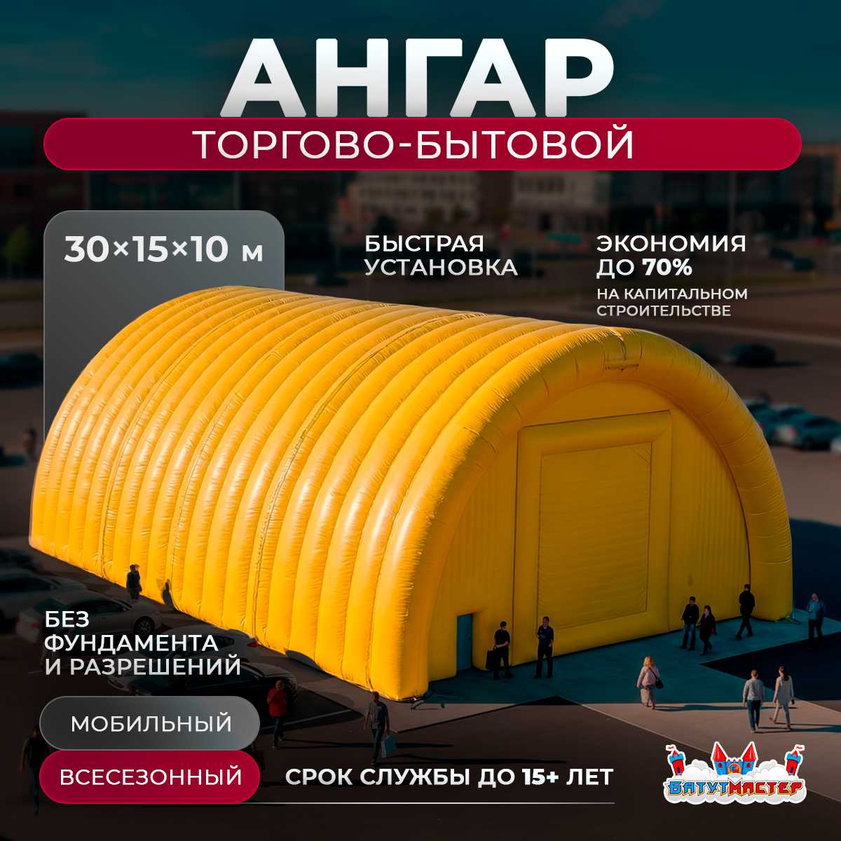 В условиях высокой конкуренции выигрывает тот, кто запускается быстрее. Быстровозводимый торговый пневмоангар 30x15x10 м — это эффективный инструмент для старта и масштабирования бизнеса. Он позволяет организовать торговое пространство, склад-магазин или крытый рынок без капитального строительства и многомесячных ожиданий.