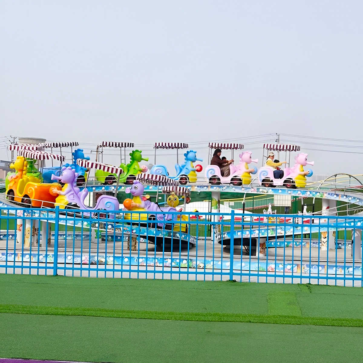 Компактные размеры 12x6x3 м позволяют разместить аттракцион как в городском парке, так и в торгово-развлекательном центре, на курорте или в крытой зоне отдыха. При этом конструкция выглядит эффектно и заметно, формируя сильную визуальную точку притяжения.