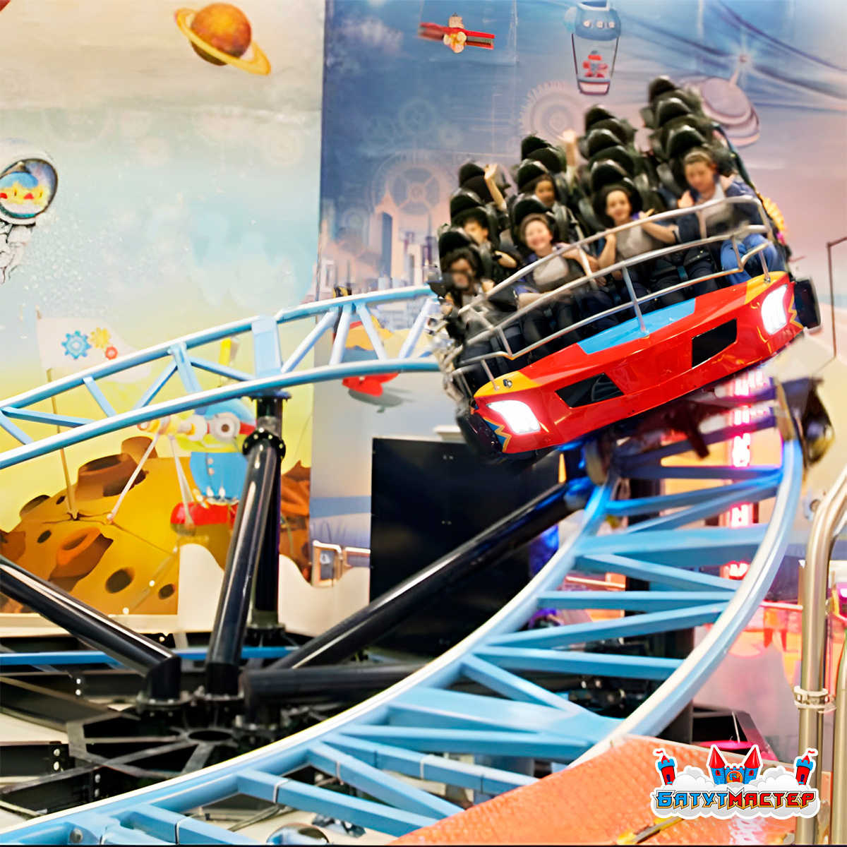Формат на 16 мест делает аттракцион универсальным решением для семейной аудитории и детских развлекательных зон.