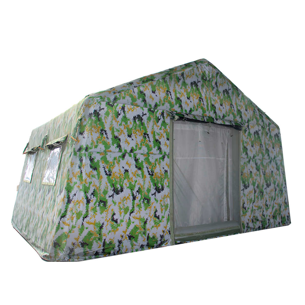 Каркас палатки держит форму самостоятельно и не требует постоянной подкачки. После подачи воздуха формируется устойчивая пространственная конструкция, способная выдерживать ветровые нагрузки.