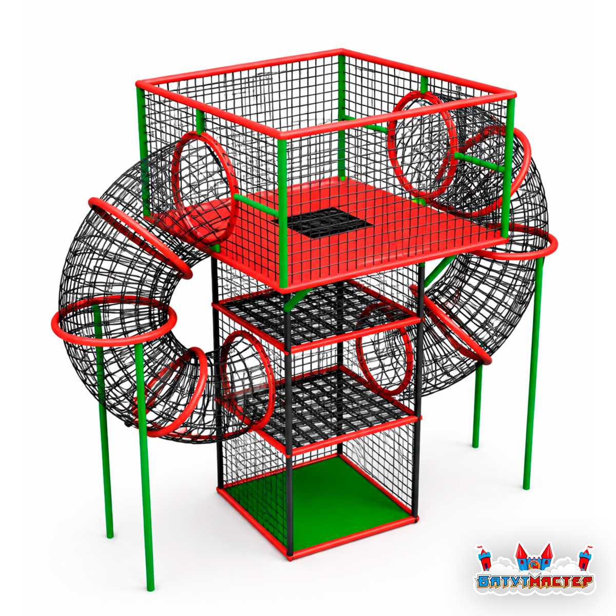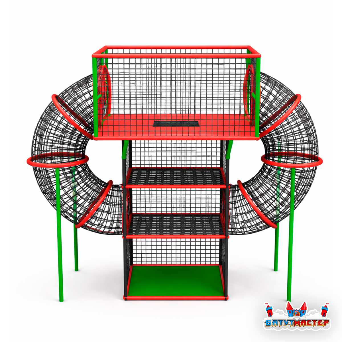 - объёмные верёвочные туннели по бокам конструкции;
