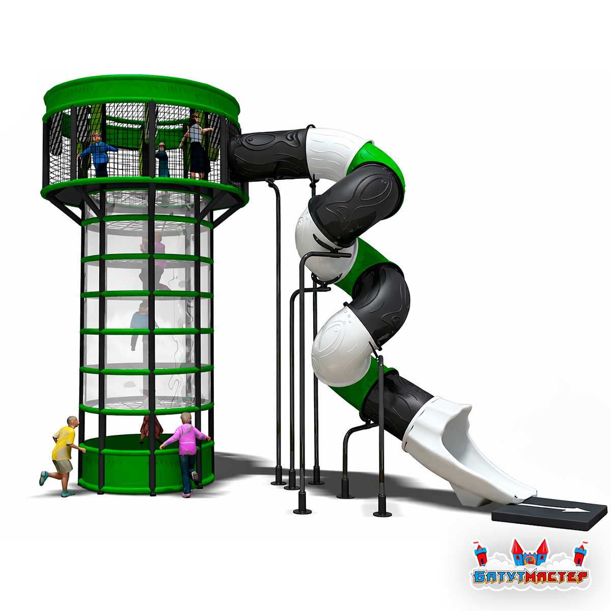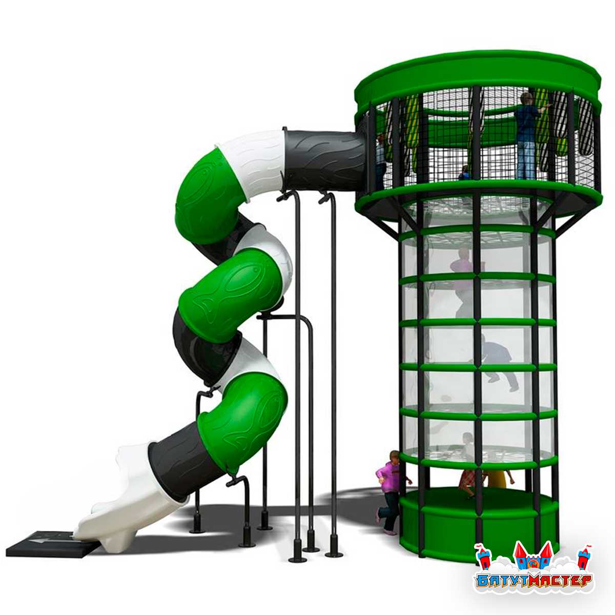 Репсовая башня «Ярус» — это не просто игровая конструкция, а вертикальный мир приключений, где каждый уровень становится новым этапом пути. Дети поднимаются всё выше, преодолевают верёвочные элементы, проходят через сетчатые платформы, ощущают азарт высоты и в финале стремительно спускаются по закрытой спиральной горке. Это формат, который удерживает внимание и вызывает желание повторить маршрут снова.