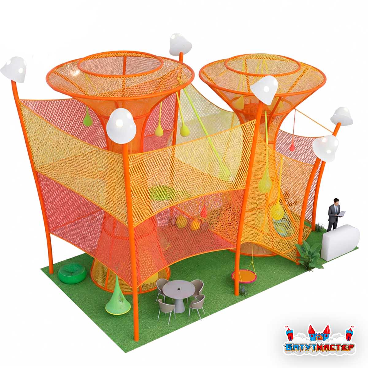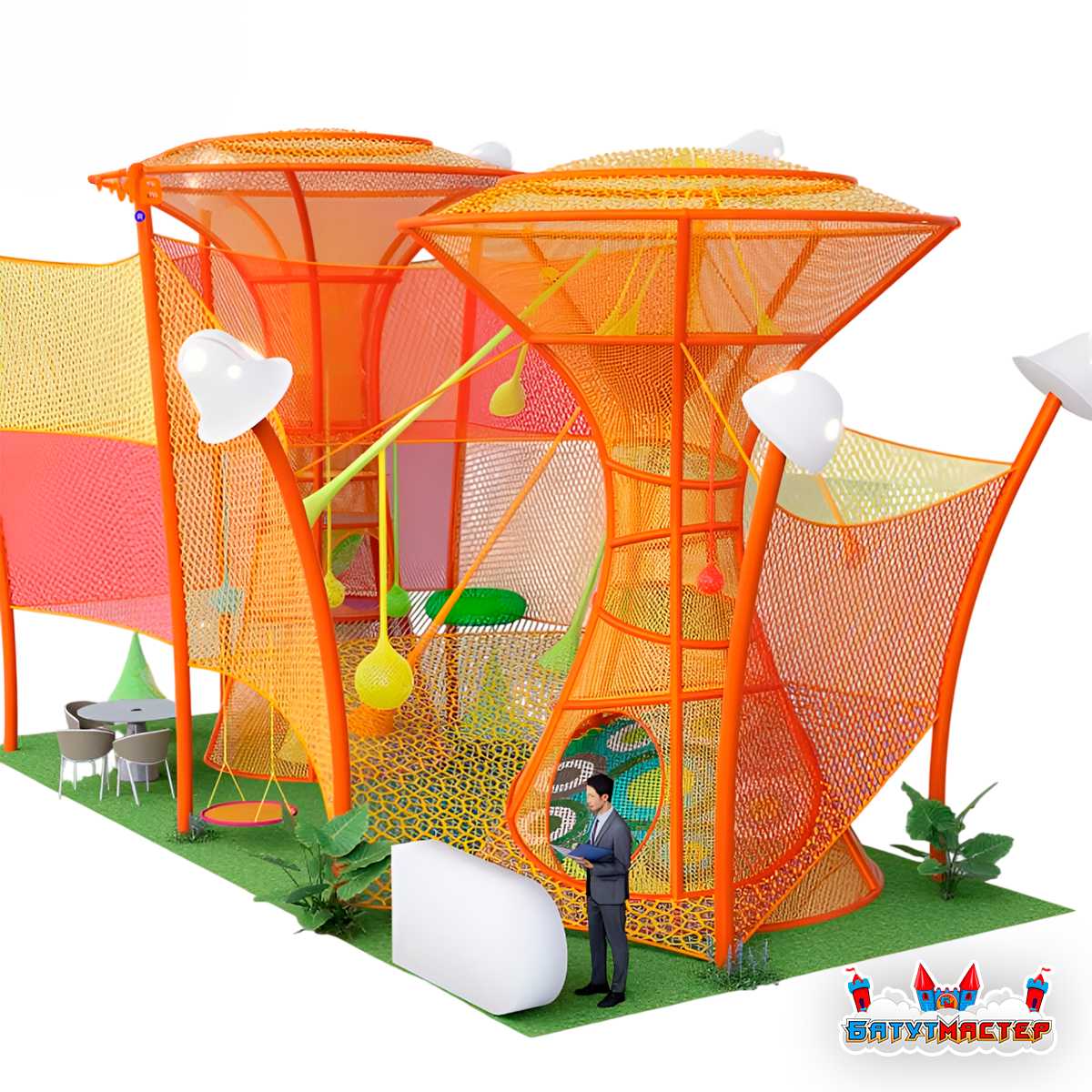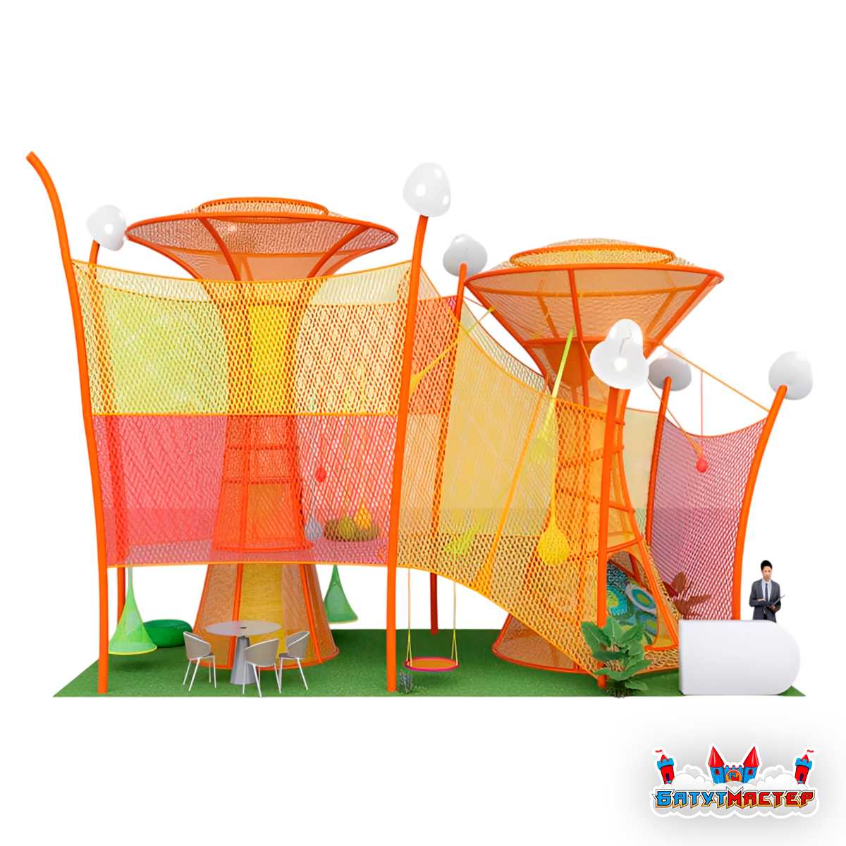 Башня органично задействует высоту помещения, превращая вертикаль в полноценную игровую среду. Благодаря этому бизнес получает не просто оборудование, а архитектурный акцент, который сразу привлекает внимание детей и родителей.