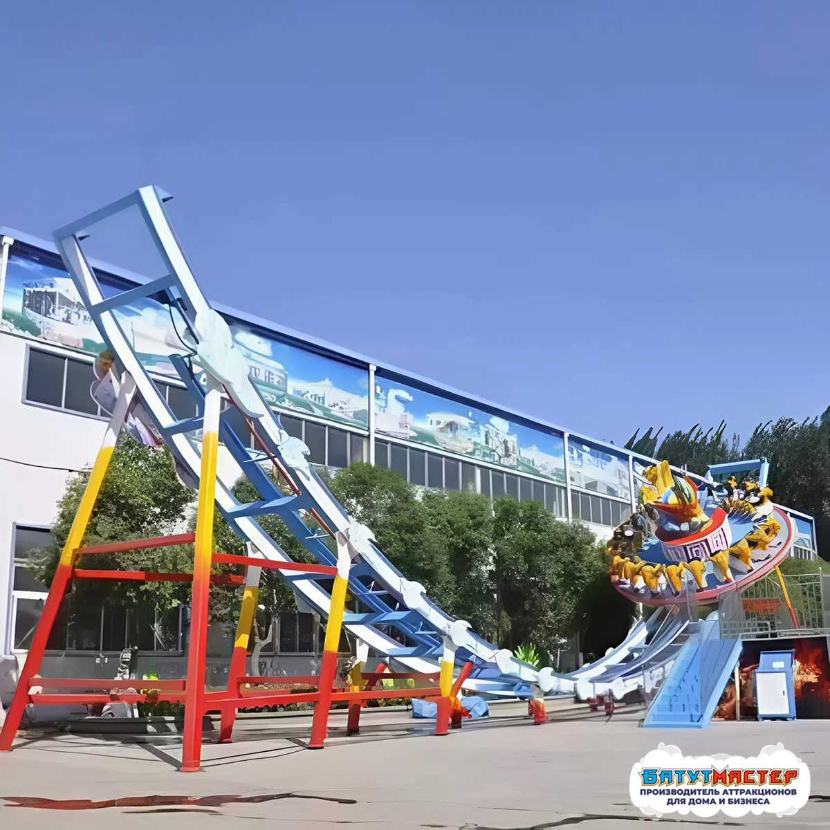 Детская летающая машина «Бешеный Размах» — это зрелищный семейный формат развлечений, который сочетает безопасность, динамику и высокую коммерческую эффективность. Конструкция длиной 22 метра формирует волнообразную траекторию движения, по которой кабина плавно перемещается, одновременно вращаясь вокруг собственной оси. Такое двойное движение создаёт ощущение настоящего полёта и лёгкой невесомости, при этом формат остаётся комфортным для широкой аудитории.