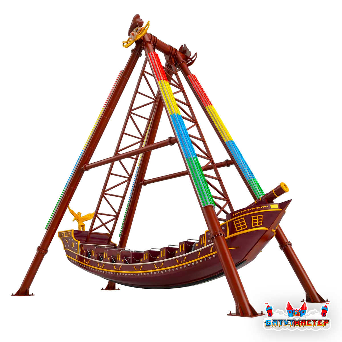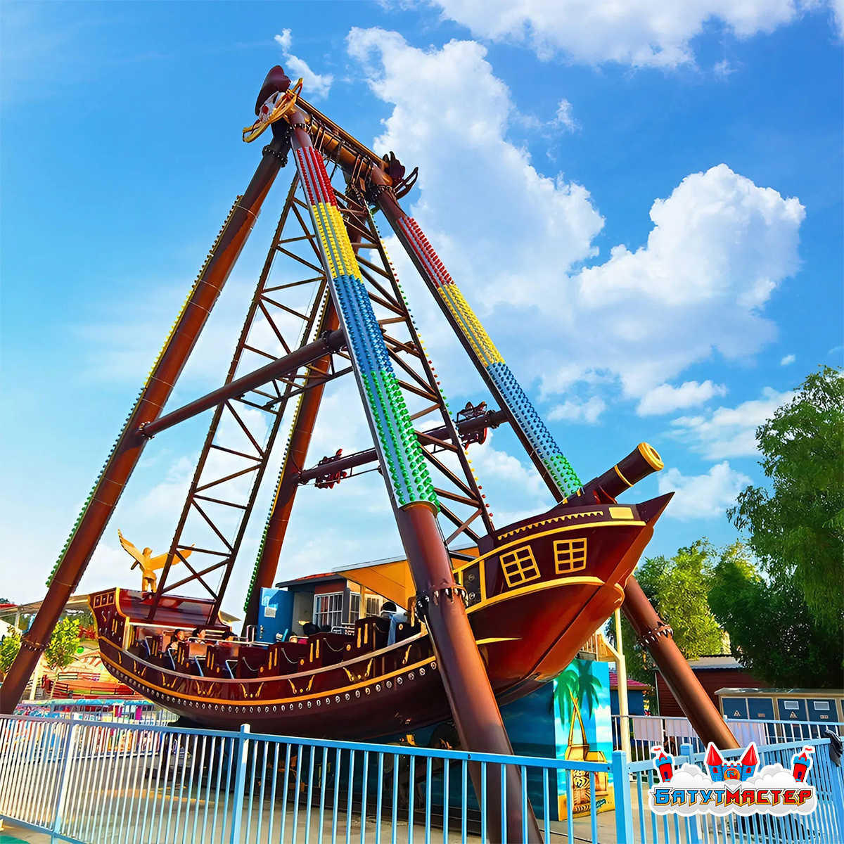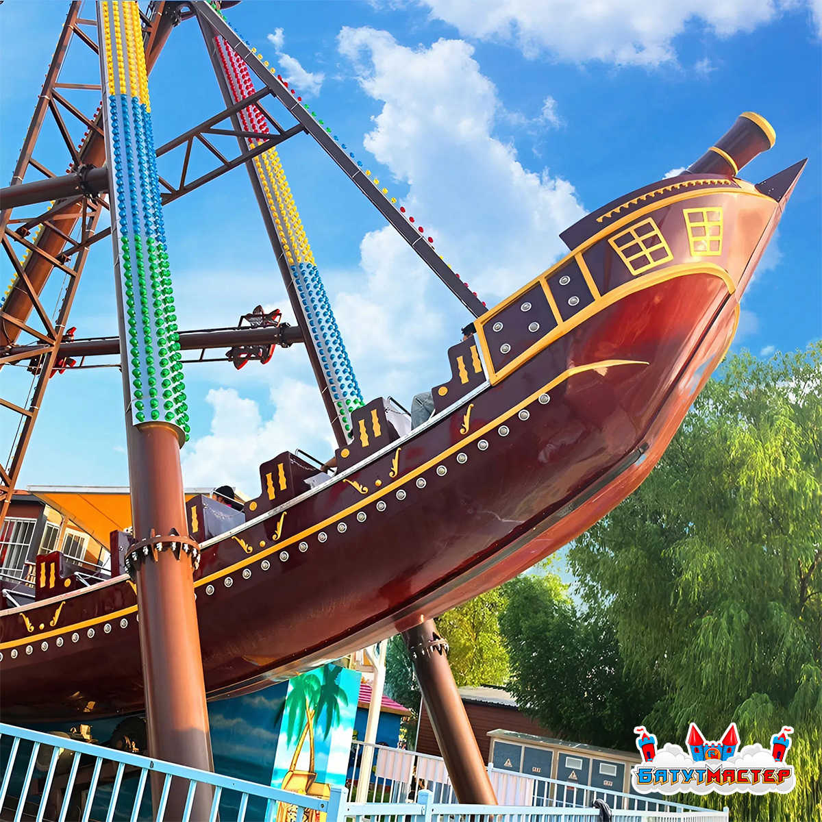«Карибский Вихрь» — это классический маятниковый аттракцион в формате пиратского корабля, выполненный в выразительном викинг-стиле. Он сочетает в себе визуальную привлекательность, динамичное движение и стабильный коммерческий интерес:
