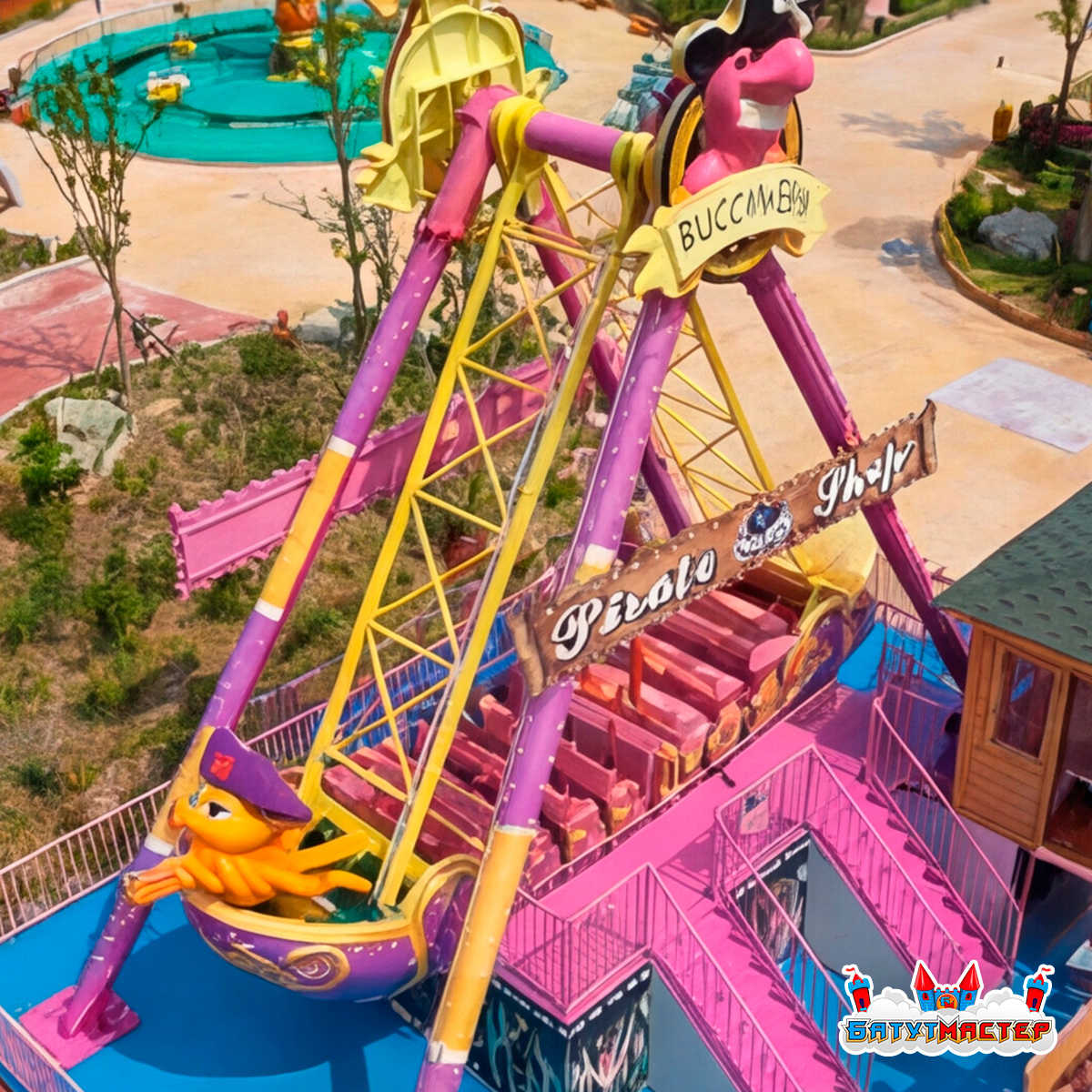 Вместимость 24 посадочных места позволяет обеспечивать высокую пропускную способность и стабильный поток выручки в течение всего рабочего дня. Аттракцион сочетает в себе эффектную стилизацию под пиратский корабль и современные технические решения, рассчитанные на интенсивную эксплуатацию в бизнес-среде.