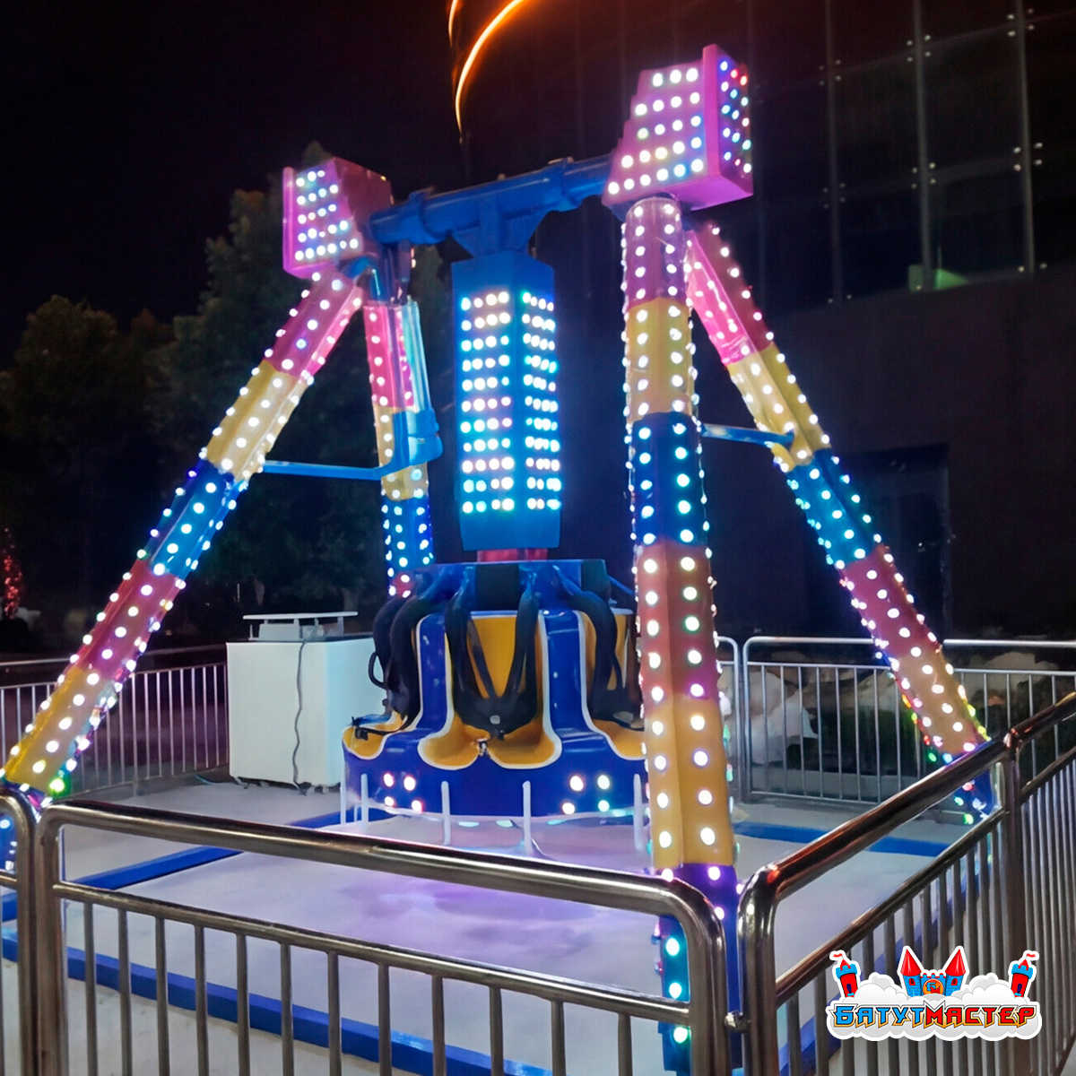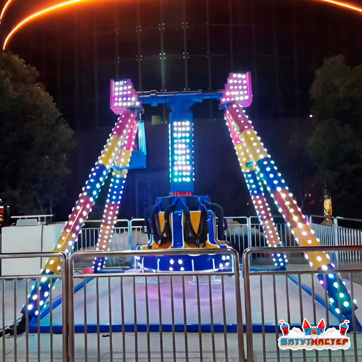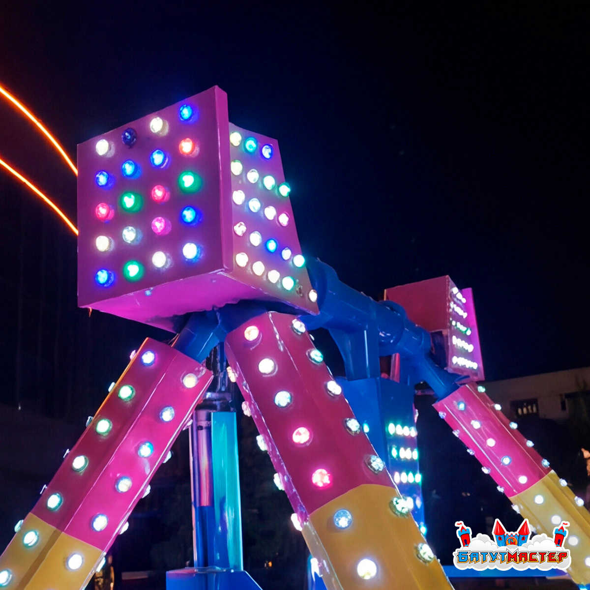 Яркое световое оформление усиливает визуальный эффект и делает аттракцион центром внимания в вечернее время.