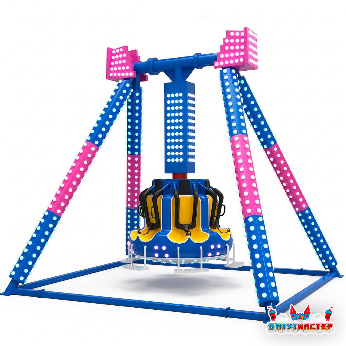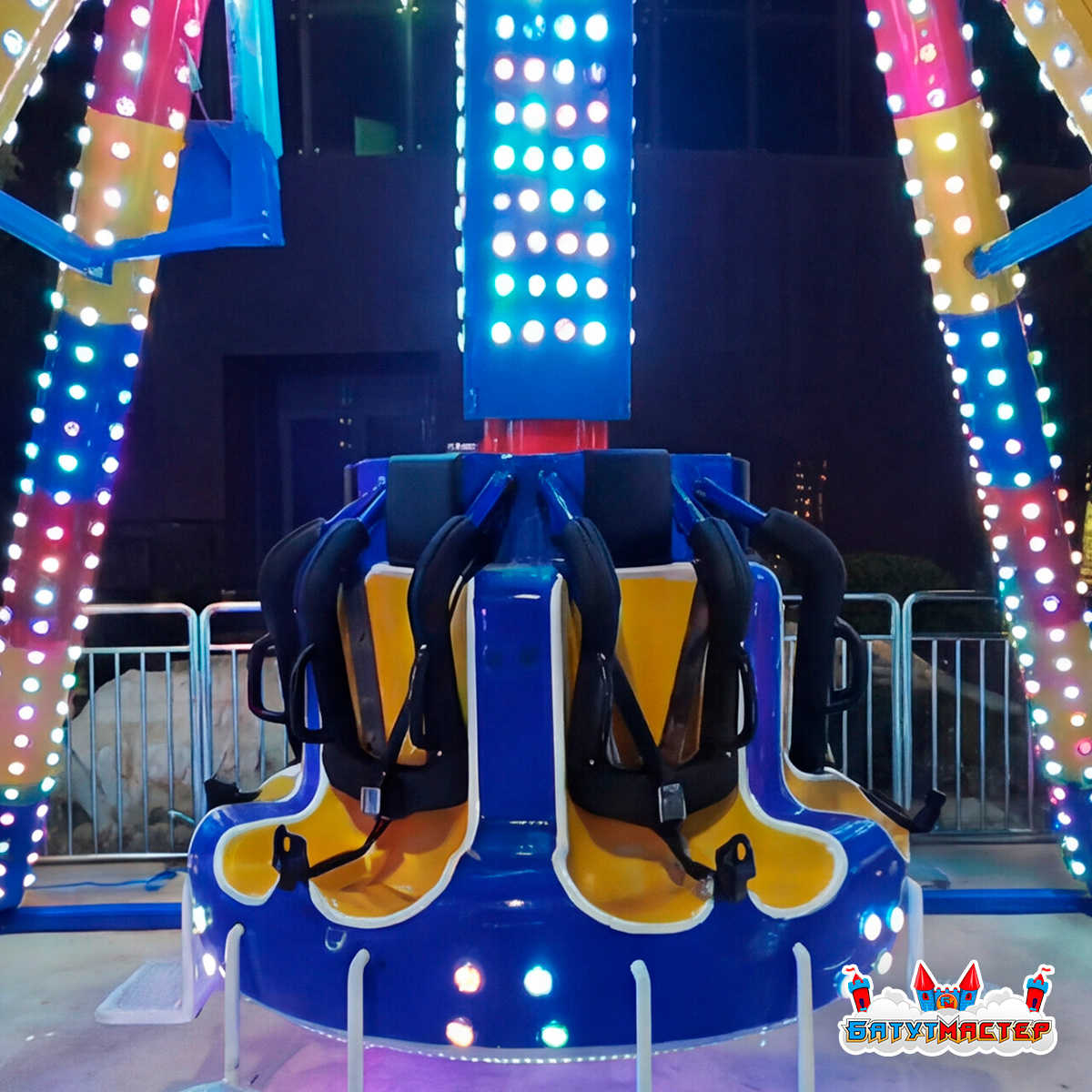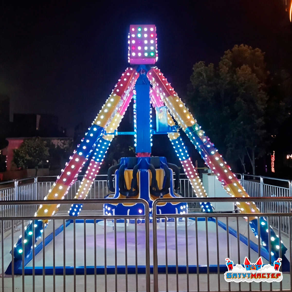 Яркое световое оформление усиливает визуальный эффект и делает аттракцион центром внимания в вечернее время.